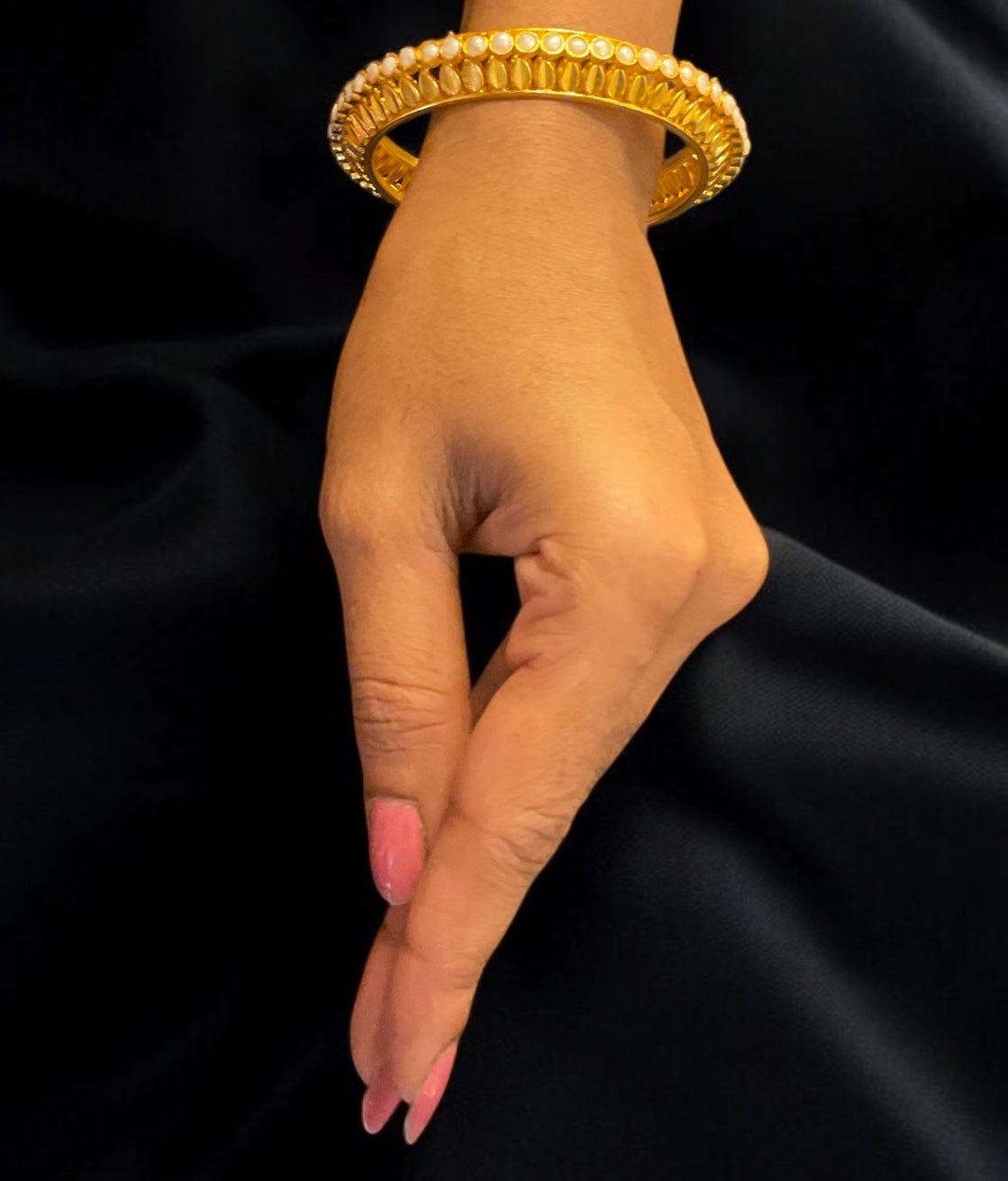 The Moti Tode Silver Pearl Bangle- Single (Size/2.2/ 2.4/2.6/2.8)