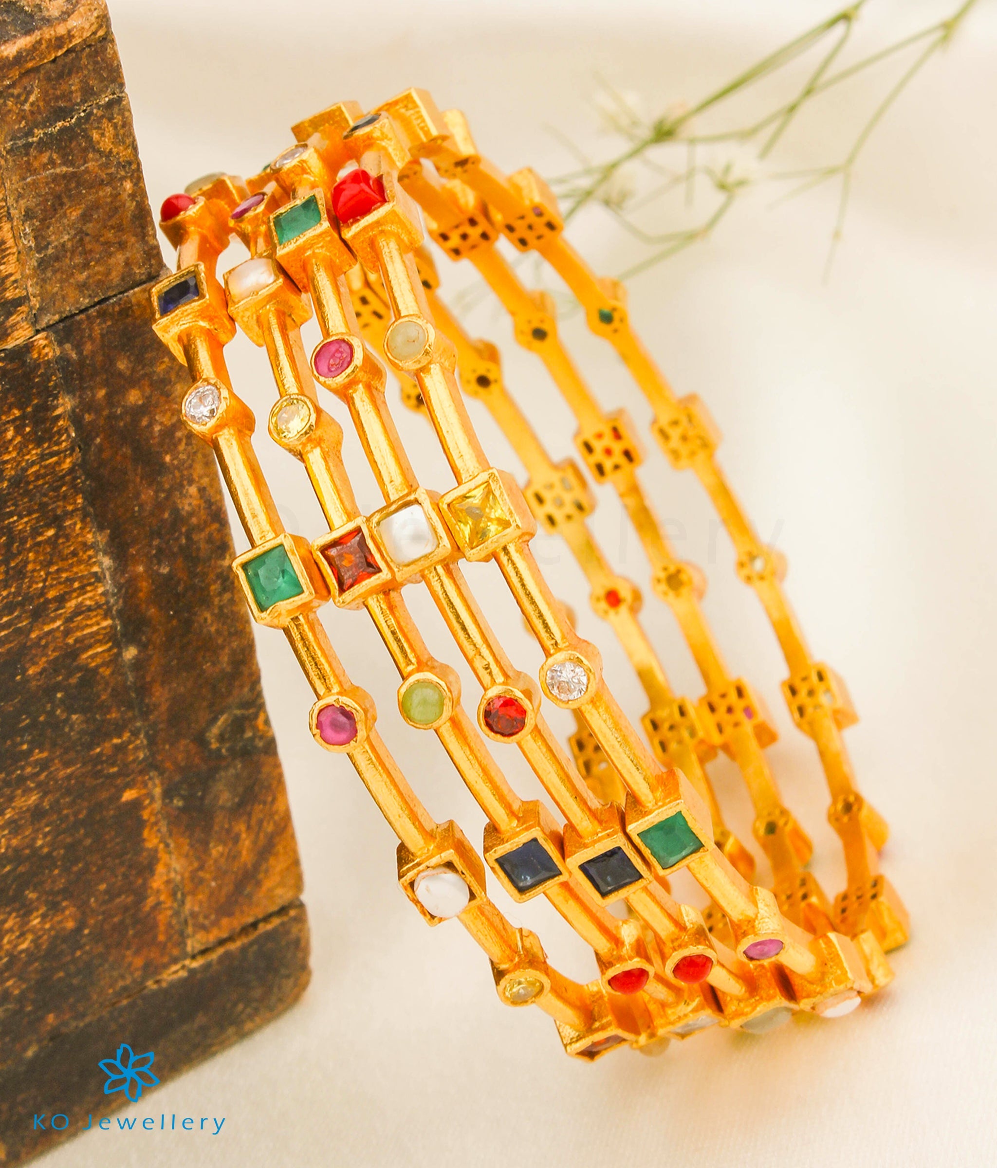 The Ridha Silver Navratna Bangle-Buy Gold Polish Silver Jewellery Online - KO Jewellery