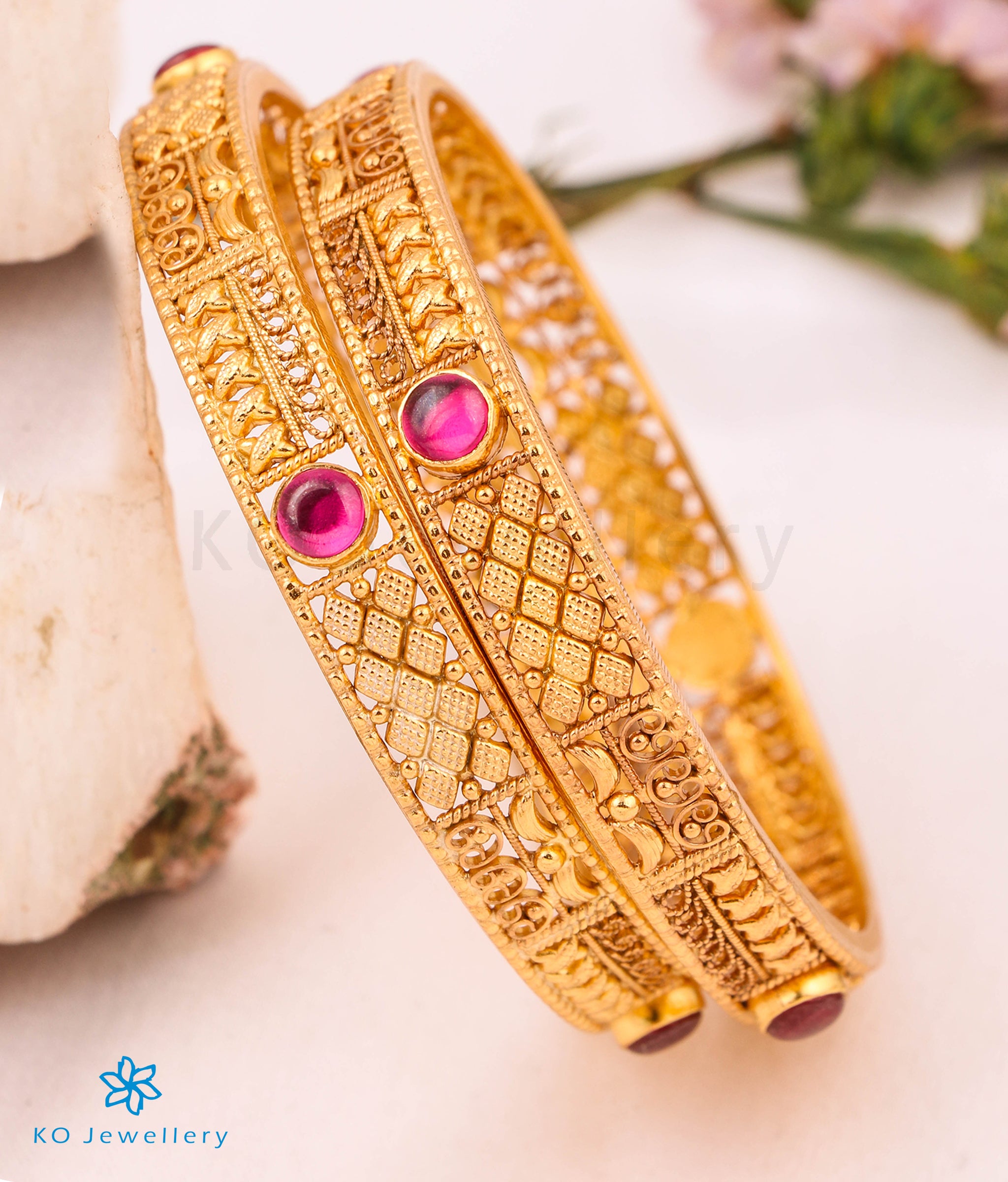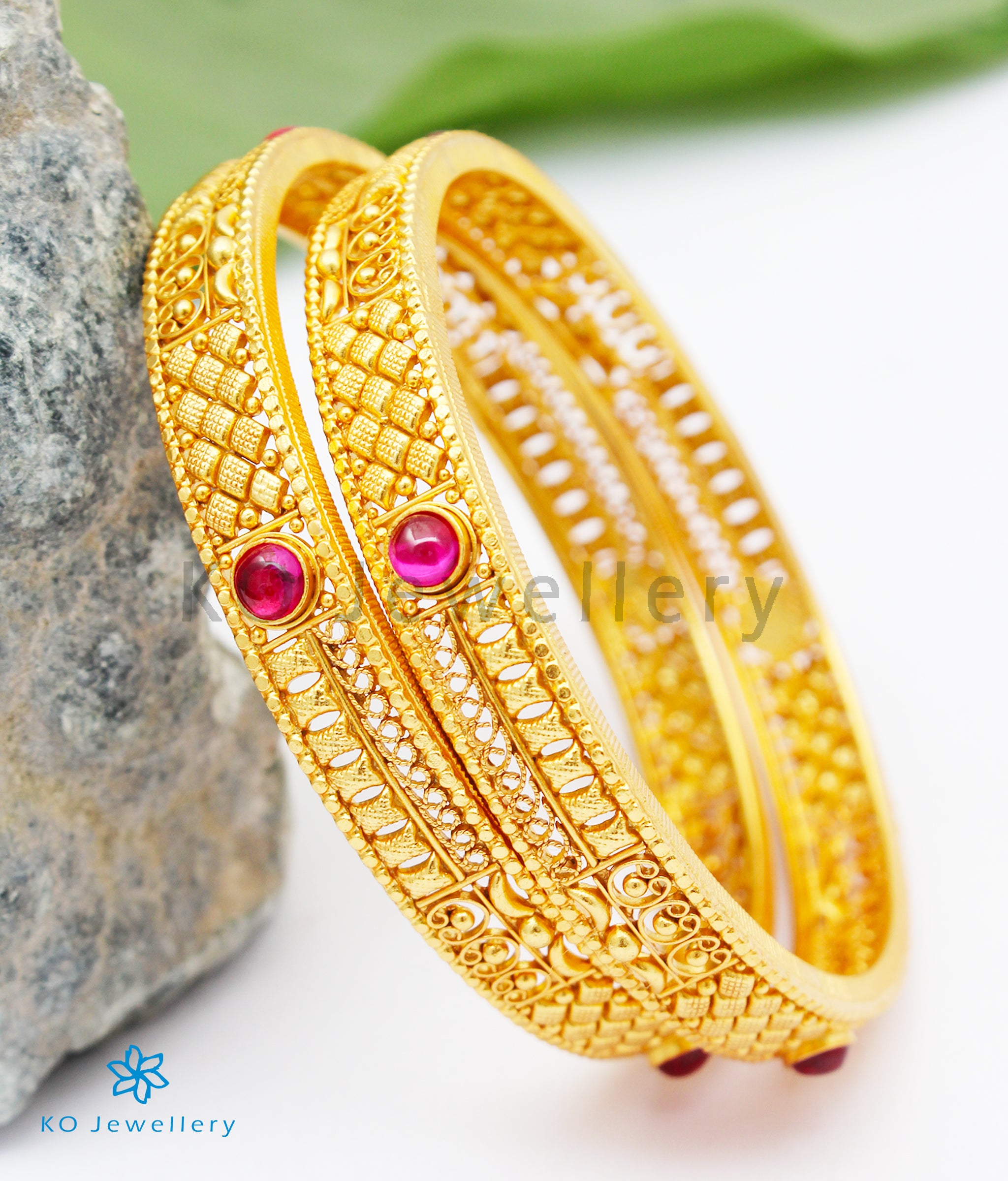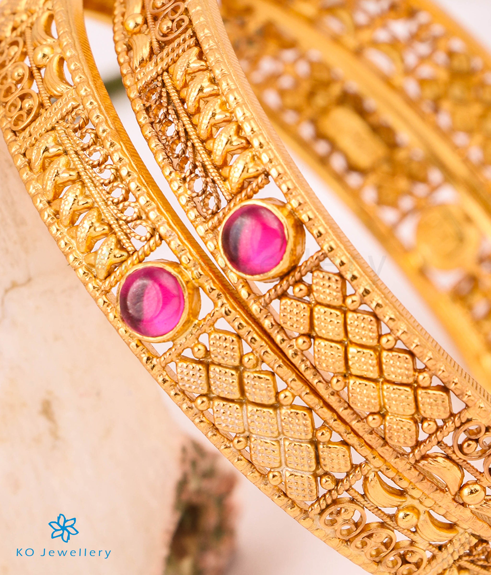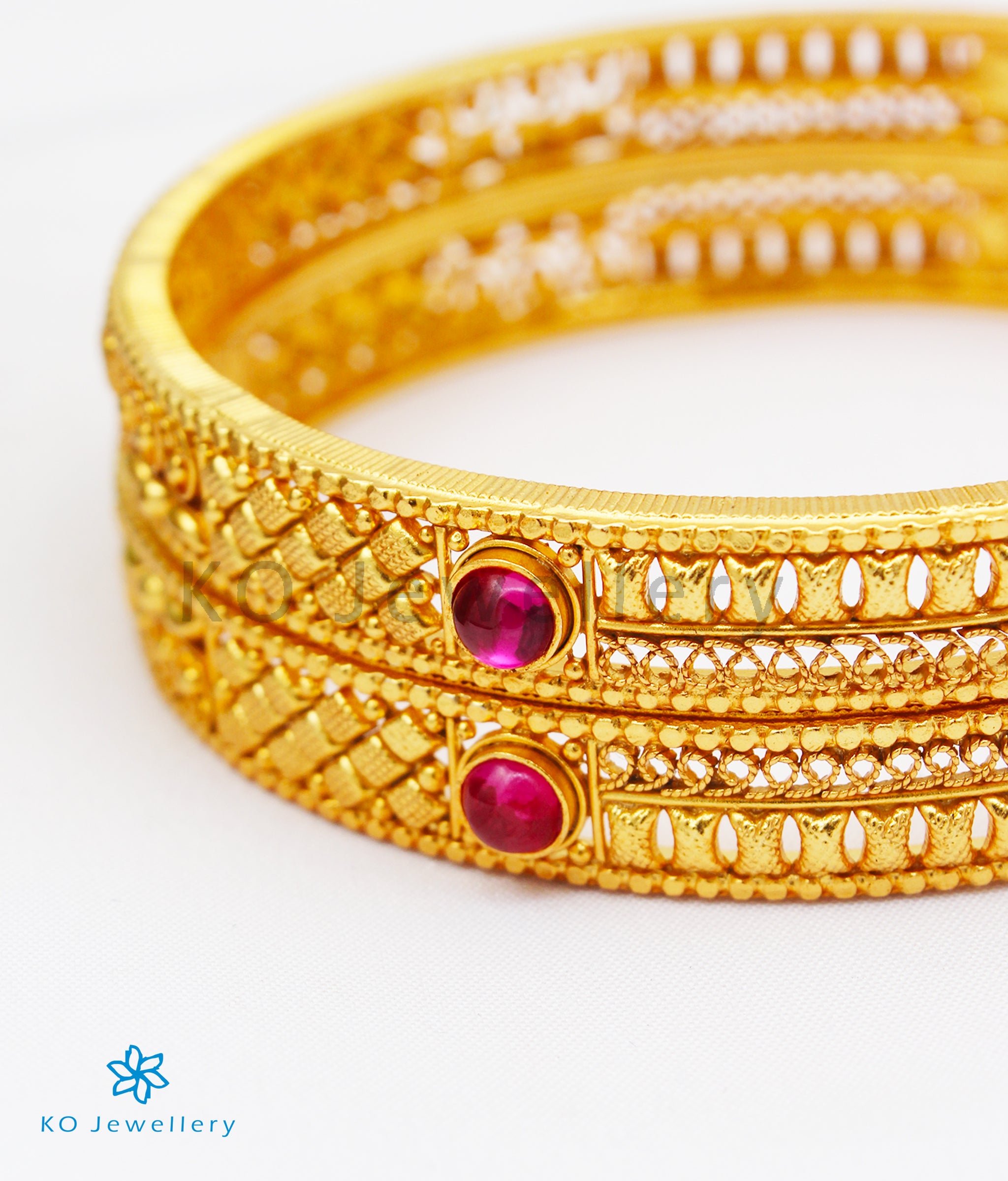 Extremely attractive and exquisitely handcrafted, this filigree bangle is a stunning ode to South Indian temple jewellery traditions. Each detail is brought to life using time-honoured techniques from ancient goldsmithing, with intricate work that reflects the grandeur of temple art.