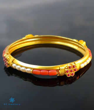 The Anagha Silver Lakshmi Coral & Pearl Bangle-Single (Size /2.2/2.4/2.6/2.8)