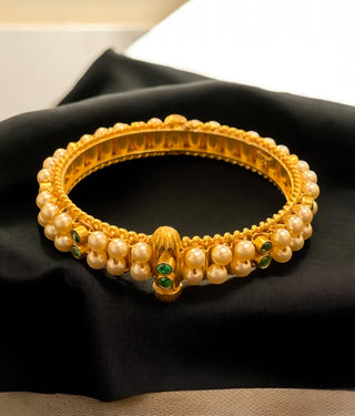 The Pihu Silver Emerald & Pearl Bangle- Single (Size/2.2/ 2.4/2.6/2.8)