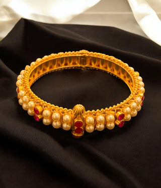 The Prisha Silver Pearl Bracelet Muttina Bale -Single ( Red /Size /2.2/2.4/2.6/2.8)