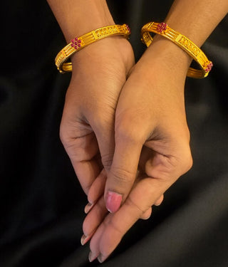 The Parag Silver Red Kemp Filigree Bangle- Single (Size /2.2/2.4/2.6/2.8)