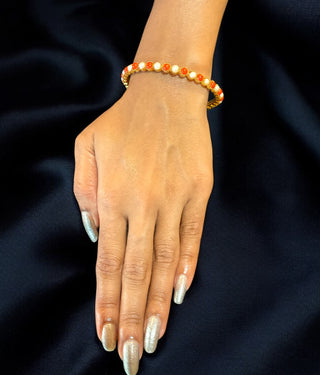 The Tanmaya Silver Coral & Pearl Bangle-Single (Size /2.2/2.4/2.6/2.8)