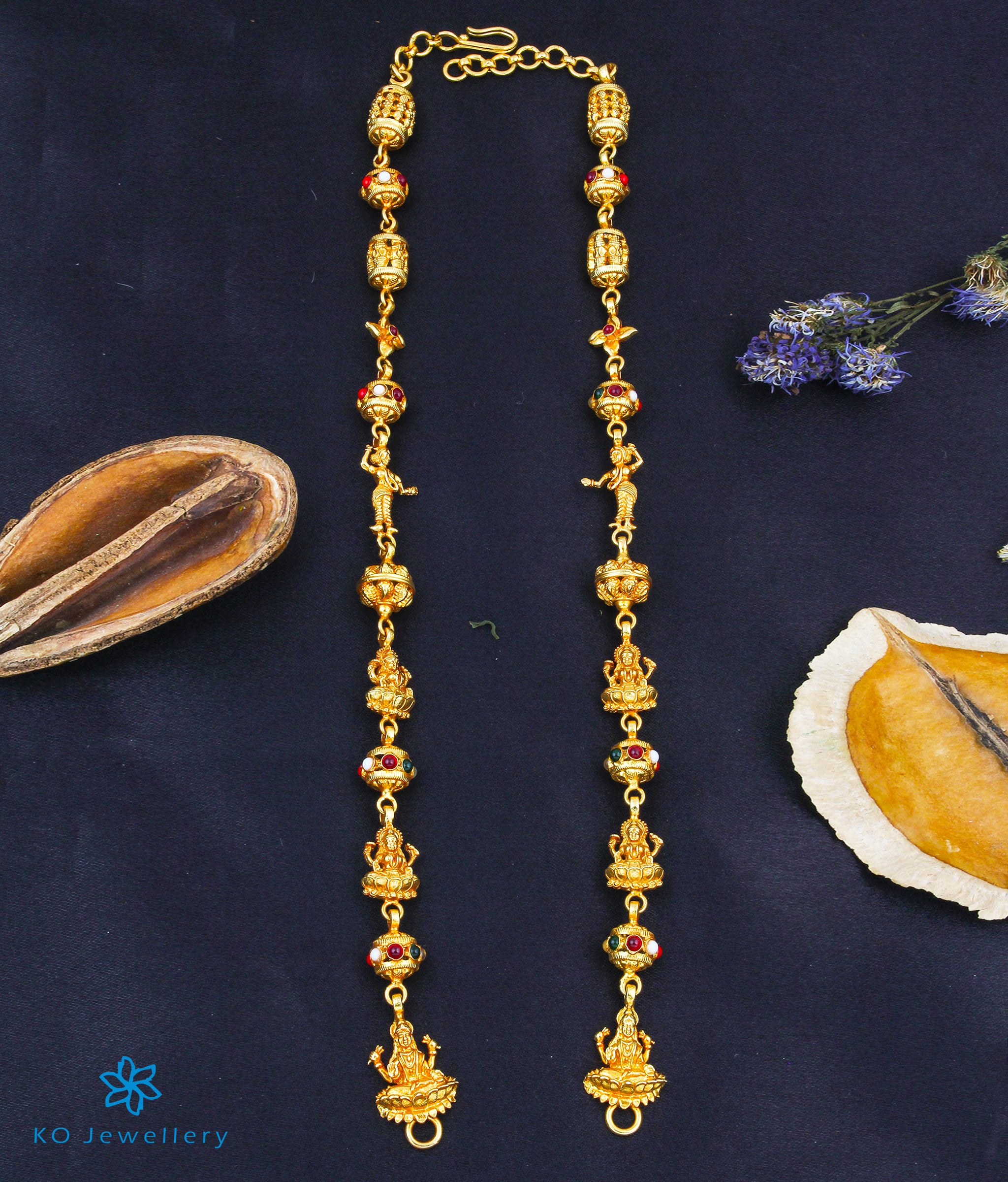 The Ishita Silver Lakshmi Navaratna Chain- Buy real gold look silver chain - KO Jewellery