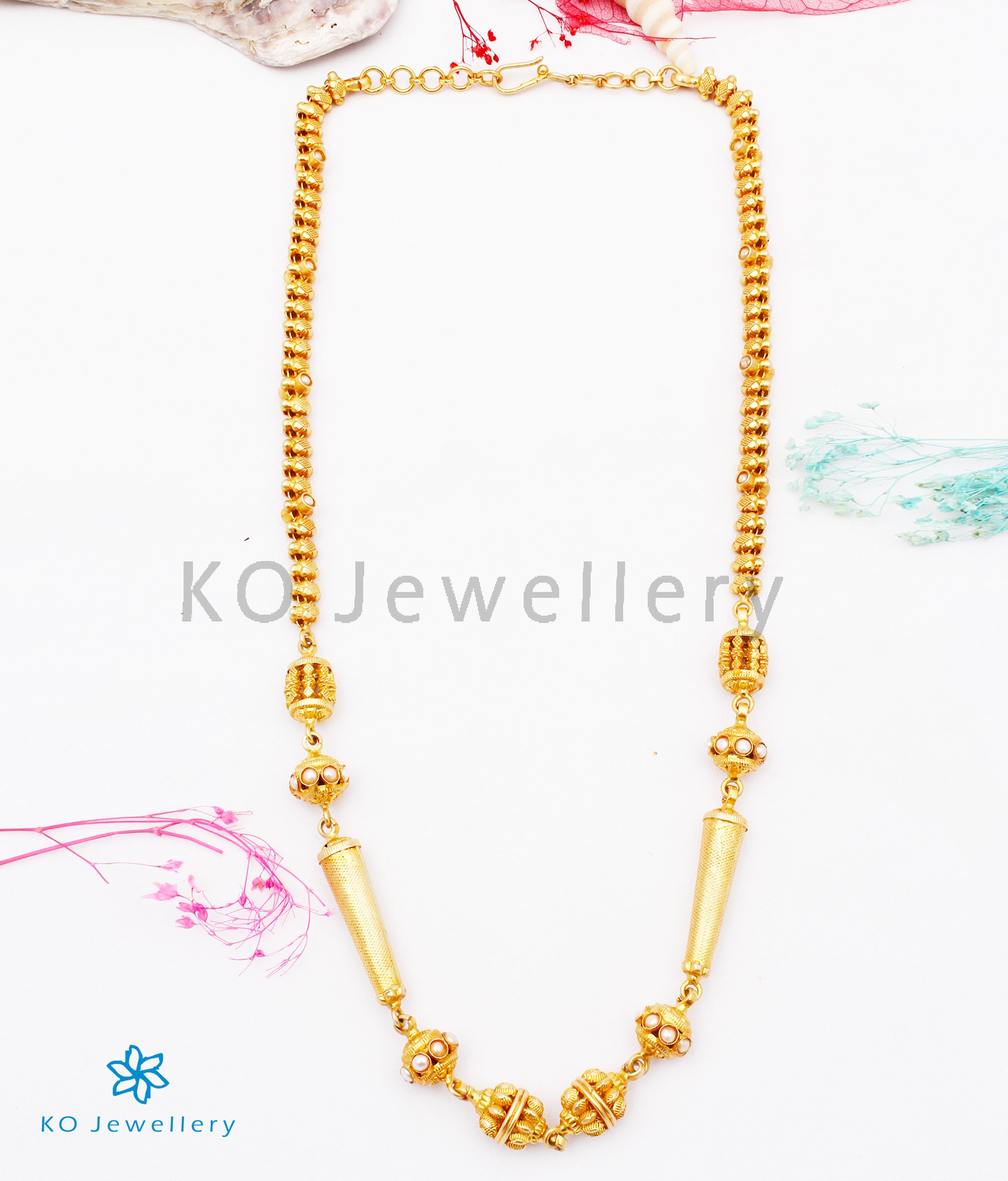 This chain is made up of gold-dipped, Sterling Silver (92.5%) beads and decorated with Pearl. Handcrafted in various intricate designs this is a stunning piece of jewellery.