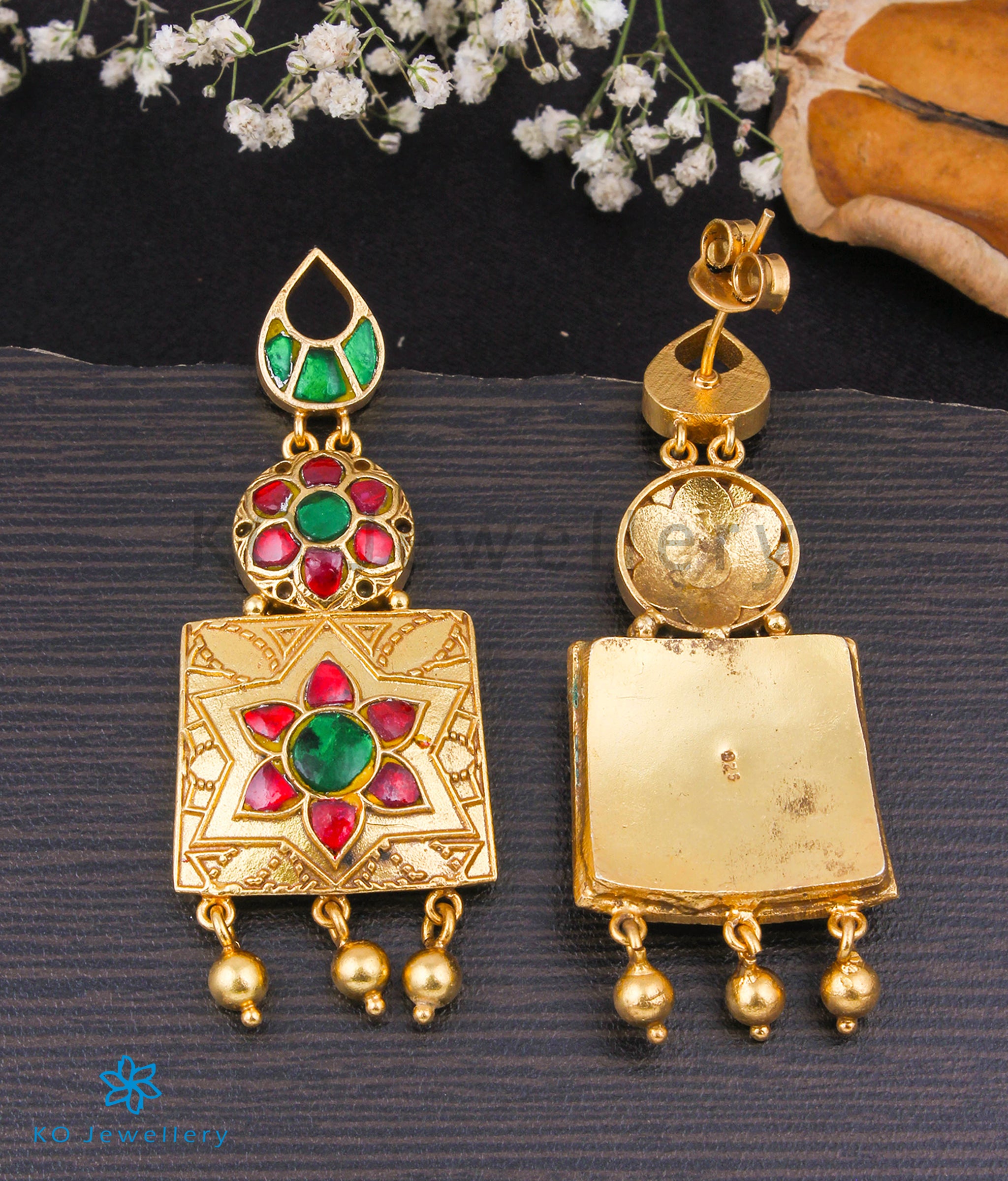 Bespoke and attractive these gold-dipped sterling silver (92.5%) statement earrings will brighten up any outfit. The contemporary design and colour means that you can pair these earrings with western and Indian outfits. The earrings come with a push back closure