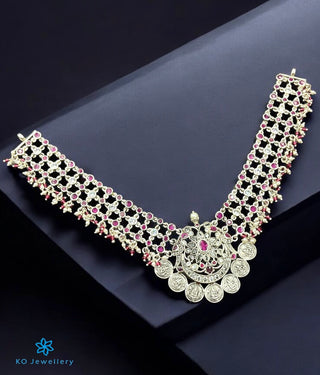 The Pratha Antique Silver Lakshmi Kasumala Coin Necklace/Waistbelt (Pearl)