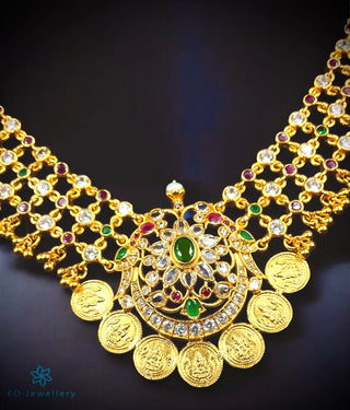 The Saumika Antique Silver Kemp Lakshmi Kasumala Coin Necklace & Earrings