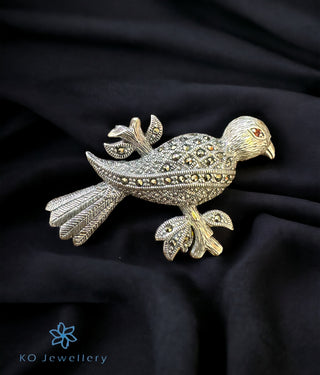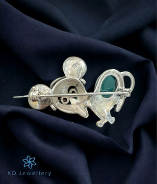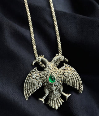 The Green Dvirupa Gandaberunda Silver Pendant/Brooch (Oxidised/Small)