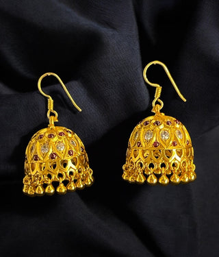 Oxidized Silver Jhumkas | Gold-dipped Silver Jhumkas