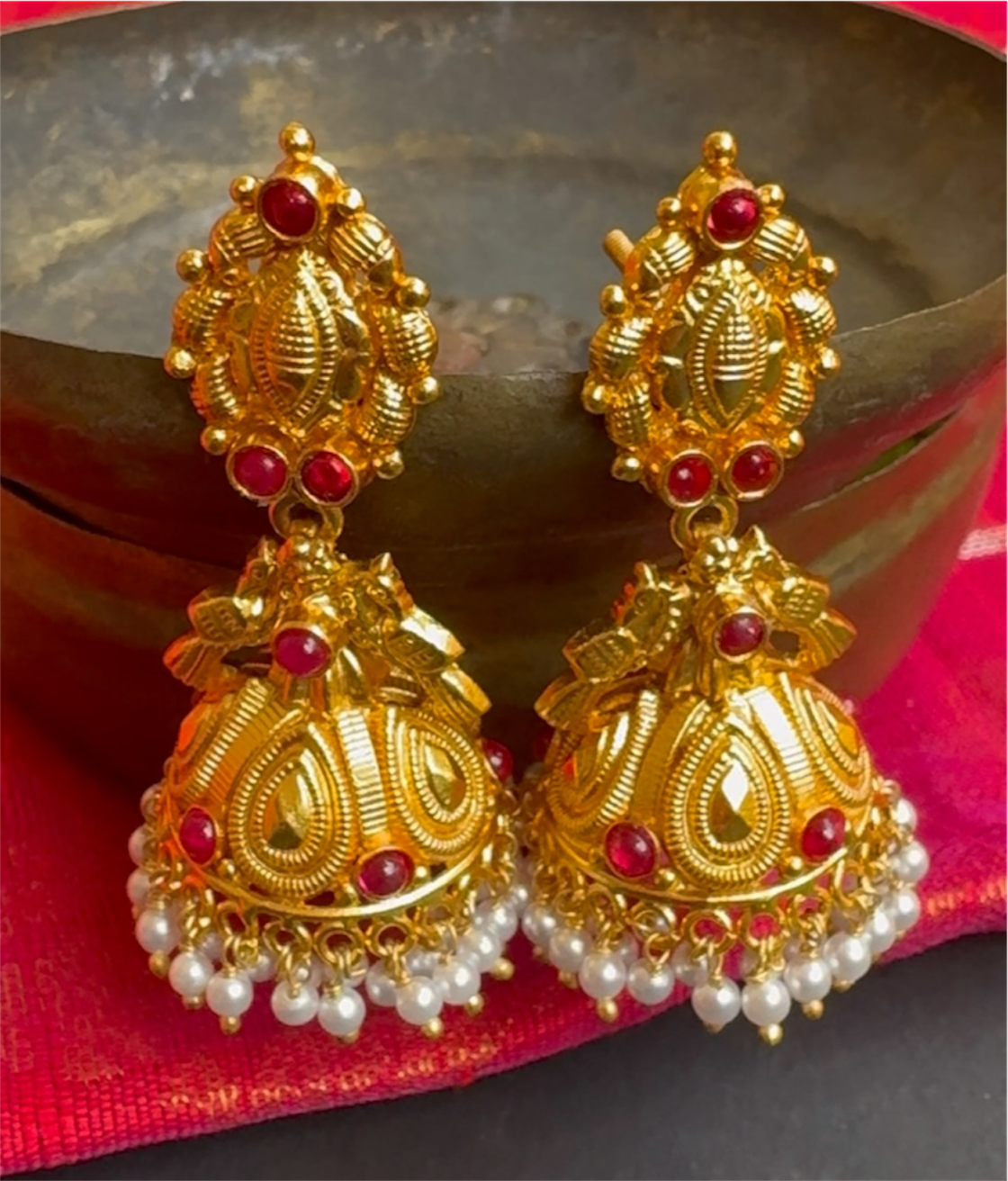 The Navya Silver Jhumki (Red)