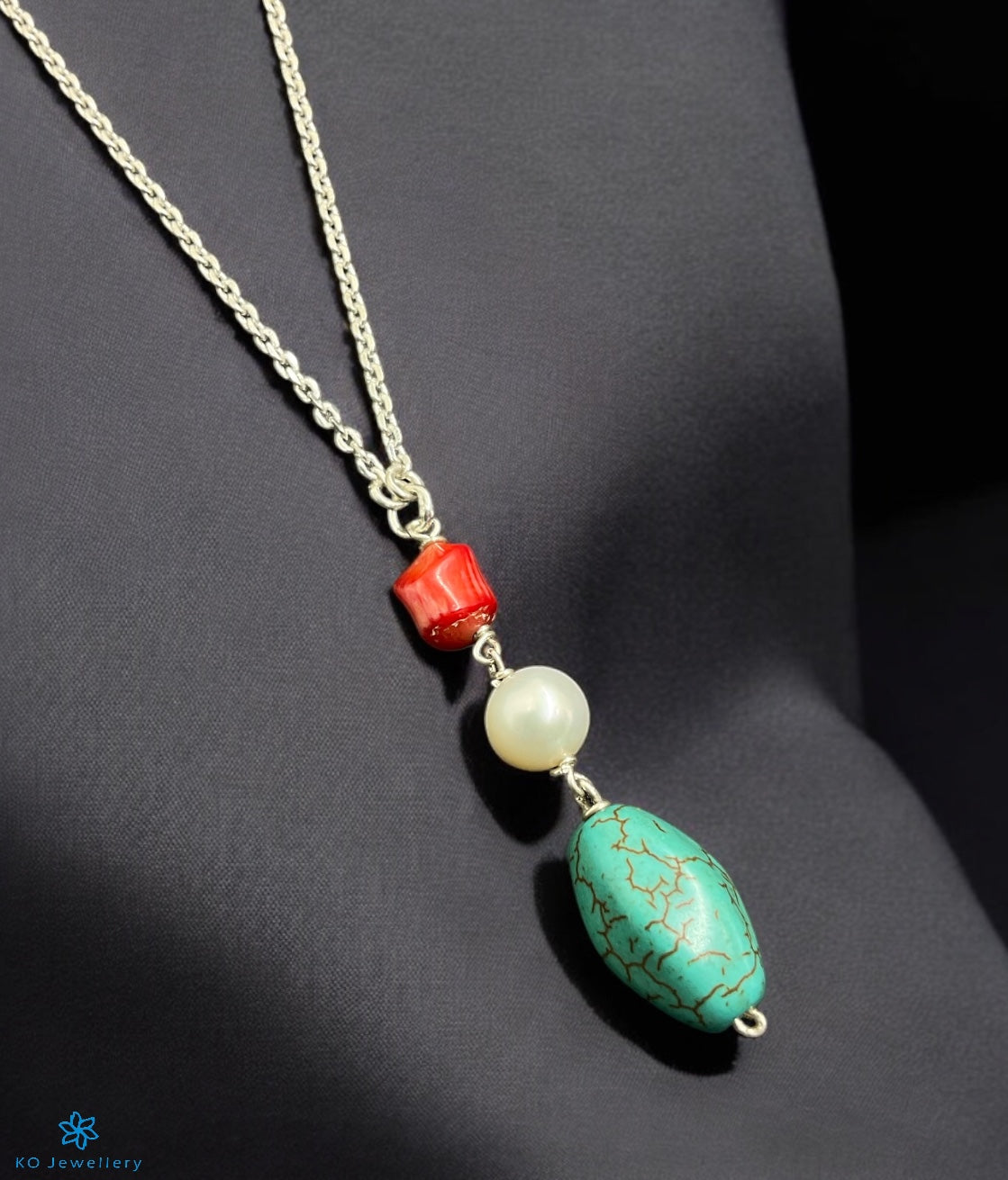 Gemstones used: Coral, Turquoise, natural cultured Pearl beads.