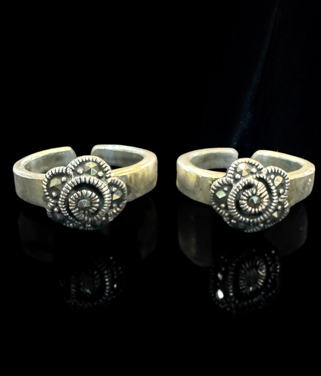 The Mogra Silver Floral Marcasite Toe-Rings