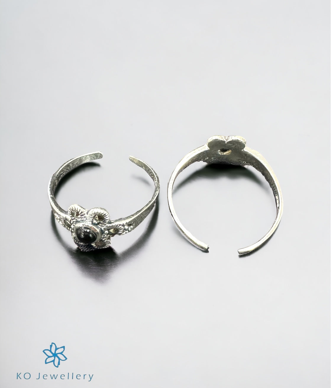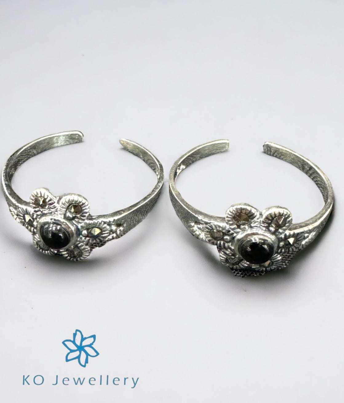 The Pushpam Silver Marcasite Toe-Rings (Black)