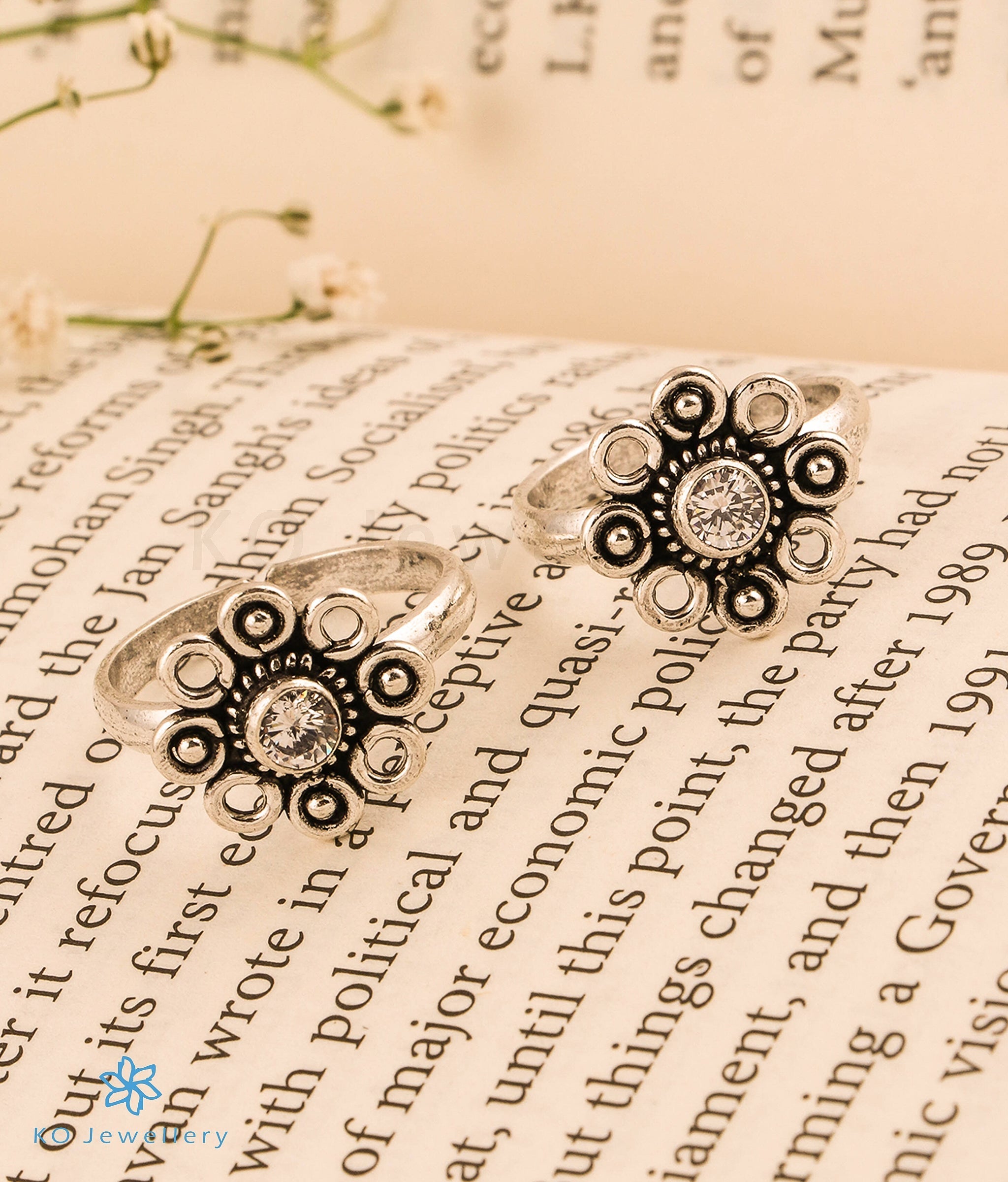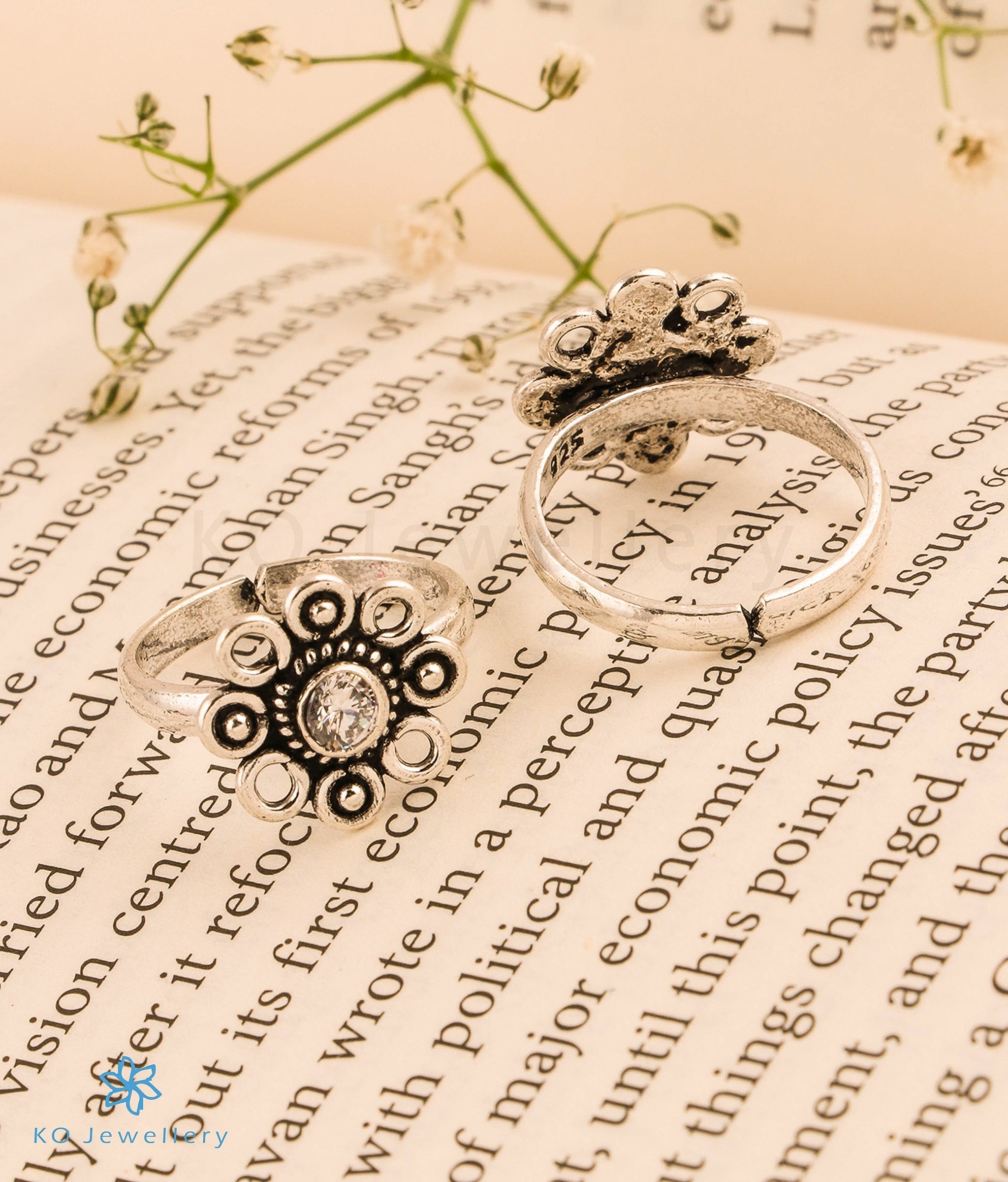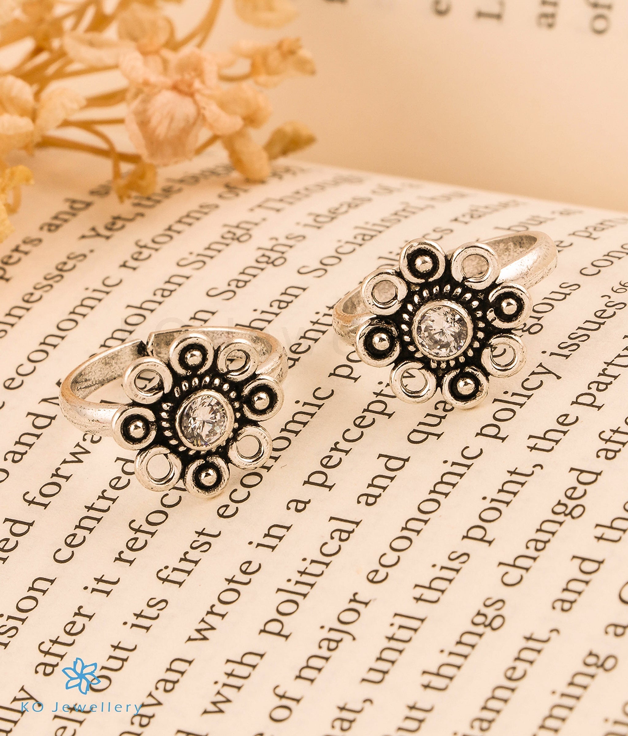 Let your feet do all the talking with this gorgeous pair of Sterling silver (92.5%) toe-rings with a single gemstone in the center. The silver band at the back is an open one and can be adjusted according to your toe-size.