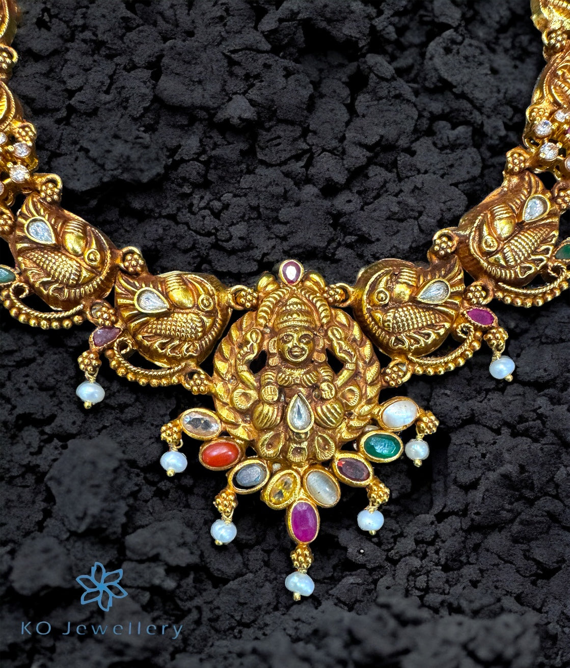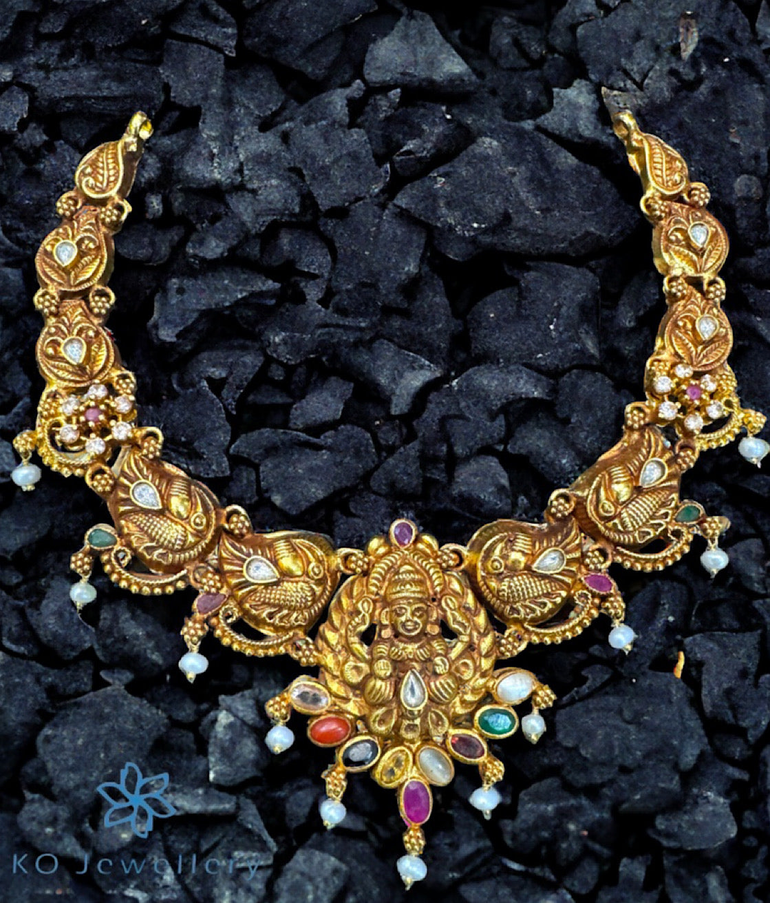 Gemstones used: AAA+ Quality Cubic Zirconia, Natural pearl, Cat's eye, Garnet, Recreated Coral, kempu stone (also known as spinel or Zircon).