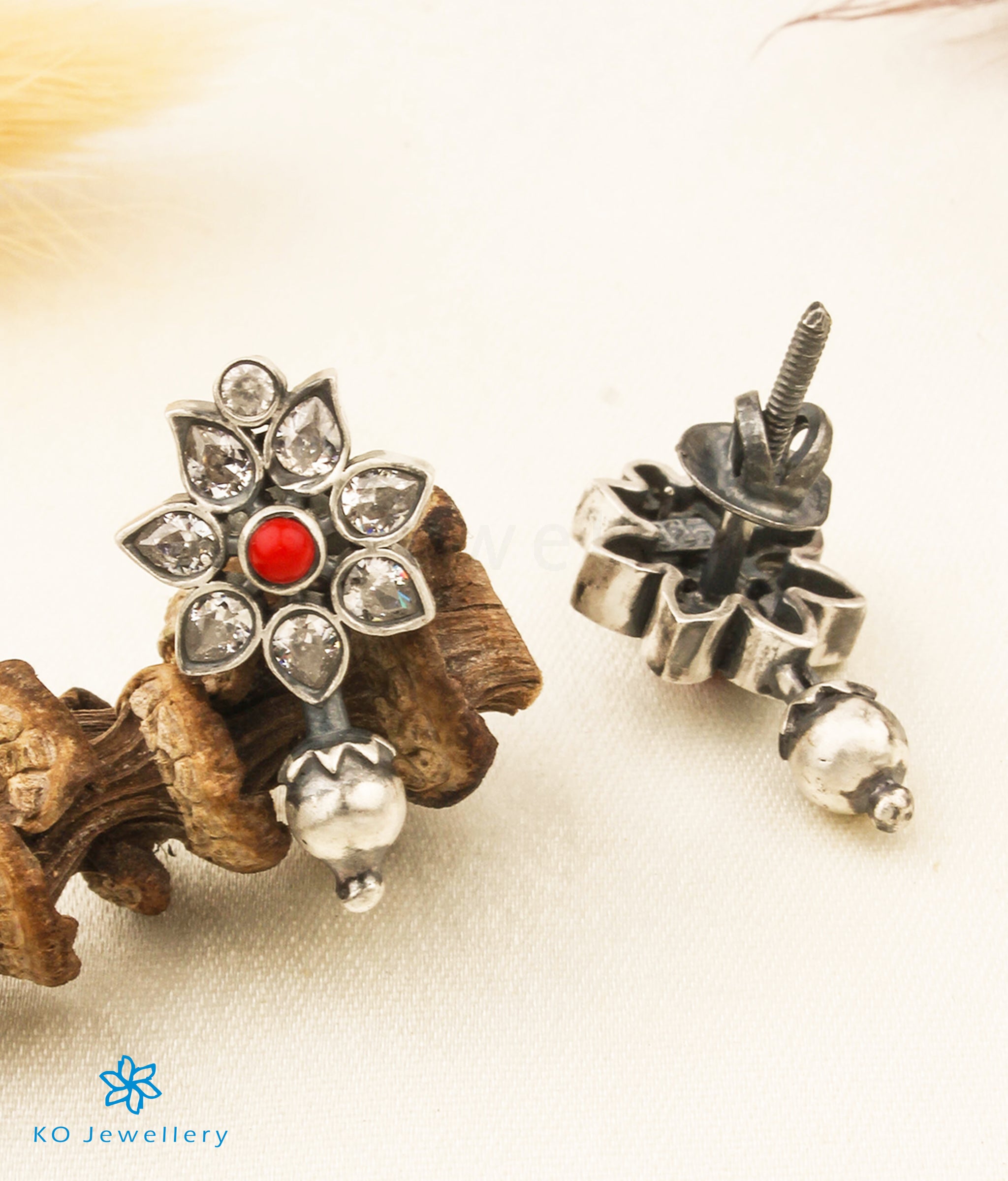 The Damini Silver Kemp Pendant Set (Oxidised/Coral)