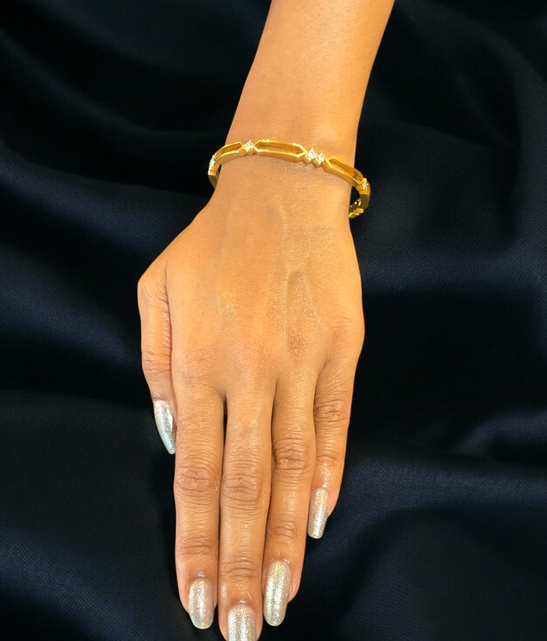 Shine like a diamond with this gorgeous , sparkling Solitaire bangle crafted using the closed method of gem setting that gives an extra sparkle to the stones, this design is truly one of a kind. Few examples of this kind of workmanship exist today .