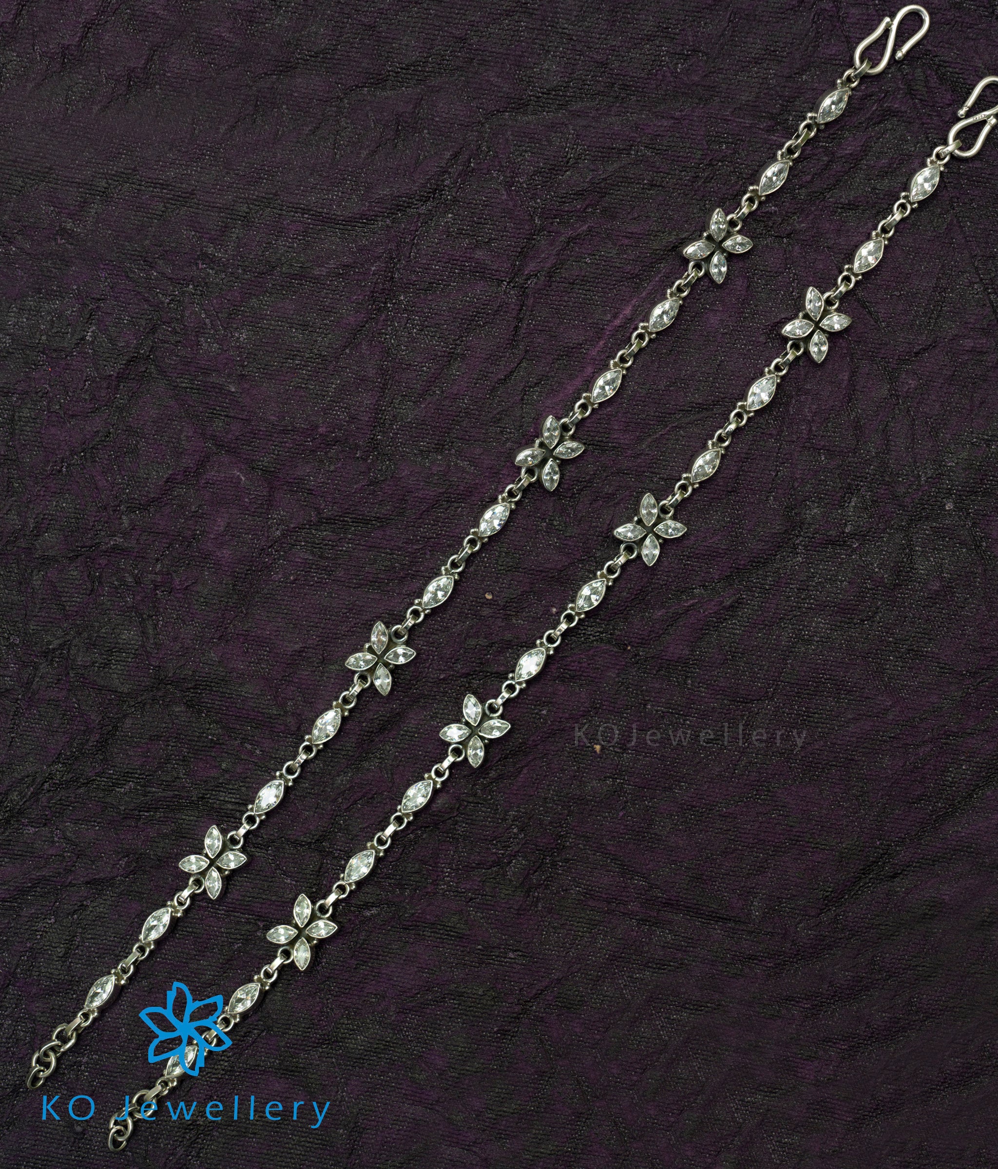 The Kripa Silver Gemstone Anklets (White)