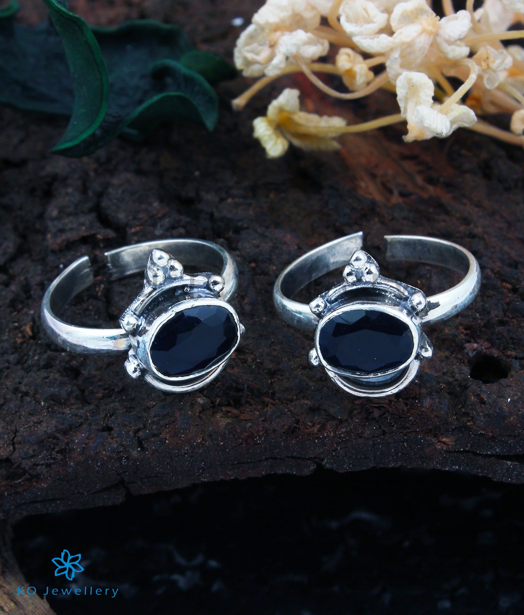 Let your feet do all the talking with this gorgeous pair of Sterling silver (92.5%) toe-rings with a single gemstone in the center. You can adjust the open silver band at the back to fit your toe size.