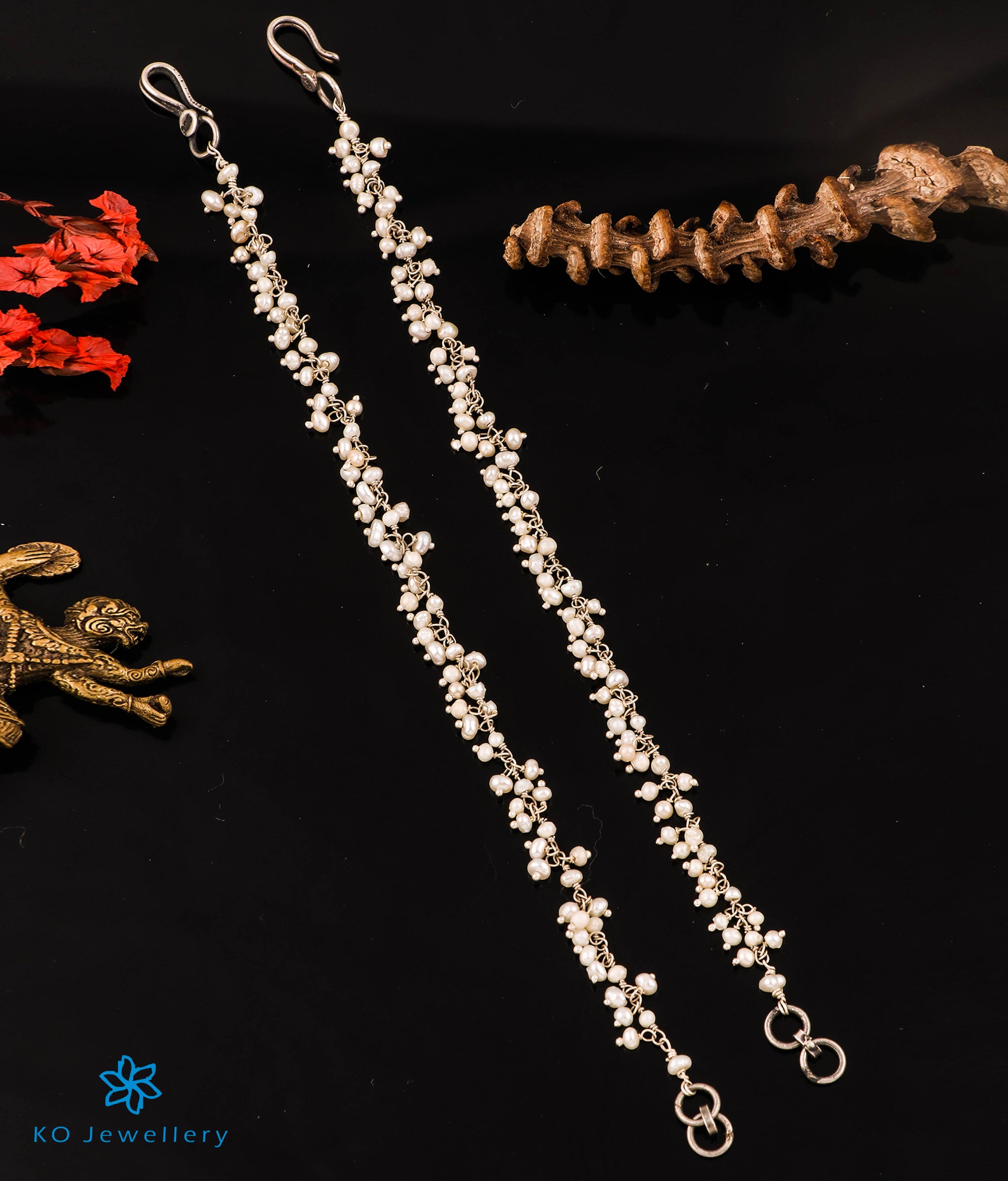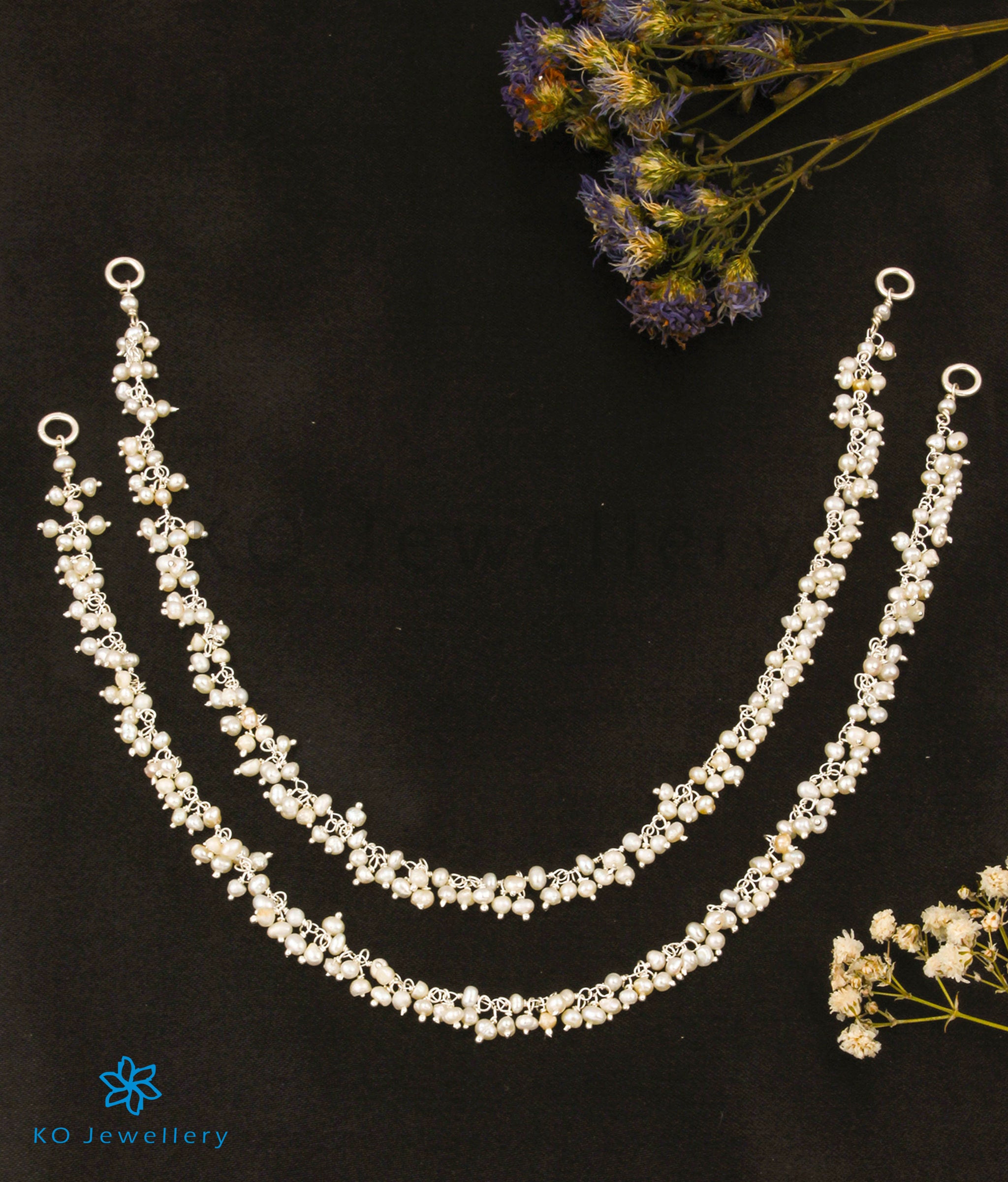 This pair of unique design matil or kaan chain with tiny pearls is handcrafted in Sterling silver (92.5%). Pair it with your traditional outfits, or style them with your indo- western outfits they look stunning .