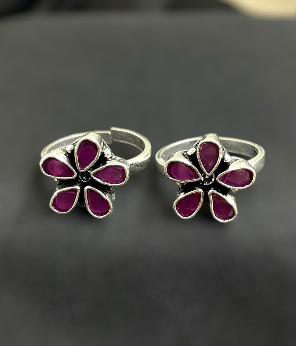 The Tarini Gemstone Silver Toe-Rings (Red)