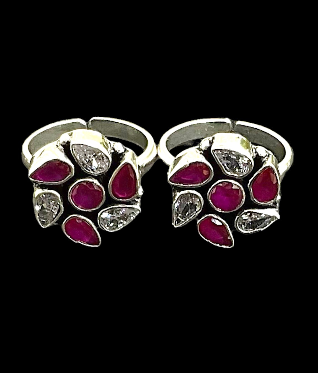The Akshata Silver Gemstone Toe-Rings (Red/White)