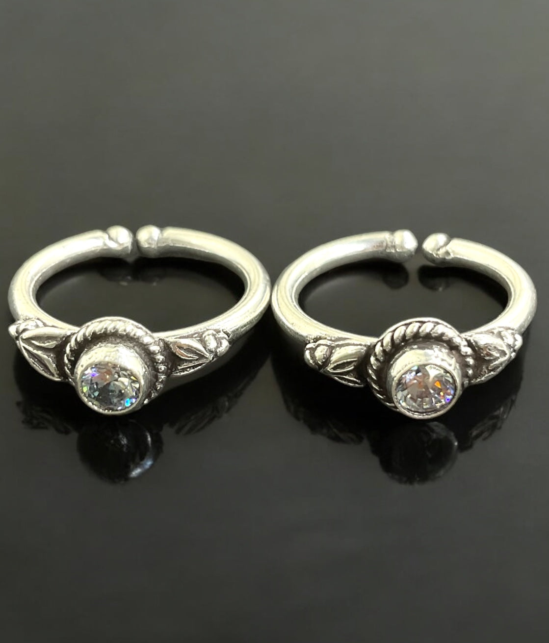 Let your feet do all the talking with this gorgeous pair of Sterling silver (92.5%) toe-rings with a single gemstone in the center. You can adjust the open silver band at the front to fit your toe size.