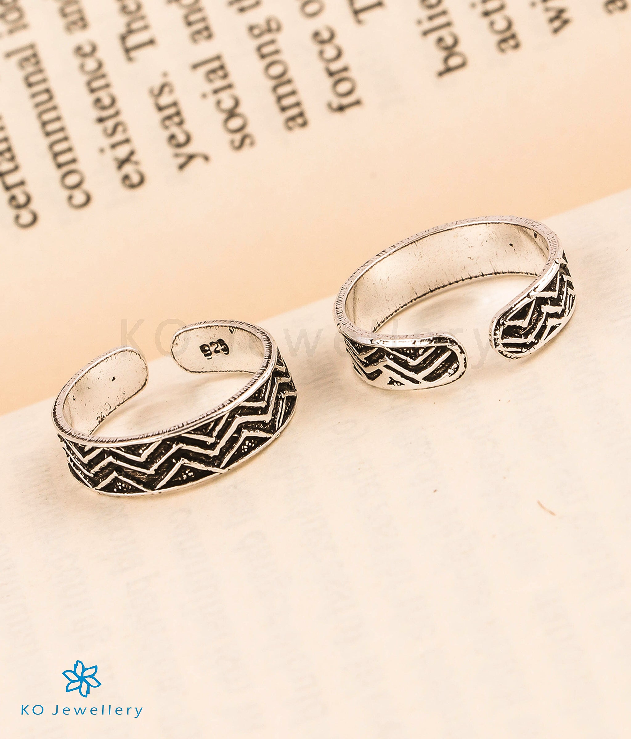 A gorgeous pair of Sterling silver (92.5%) Lines Silver Toe-Rings that are good for everyday wear. The silver band at the back is an open one and can be adjusted according to your toe-size.