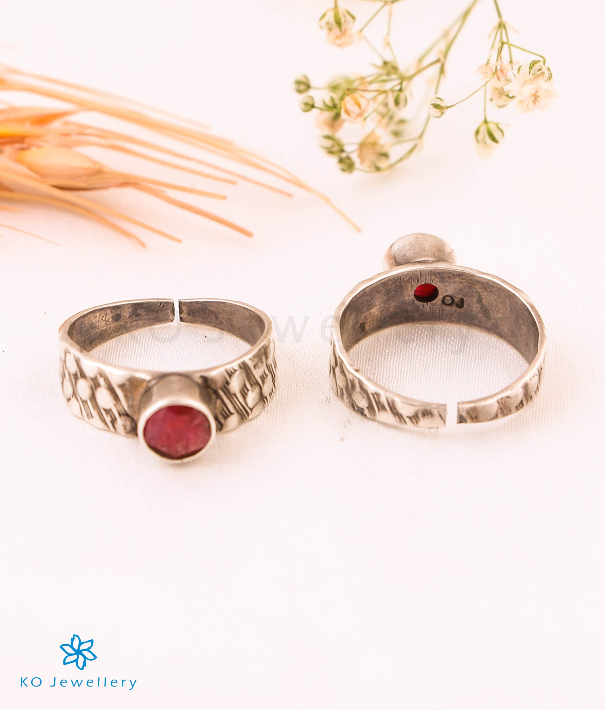 The Purabi Silver Gemstone Toe-Rings (Red)