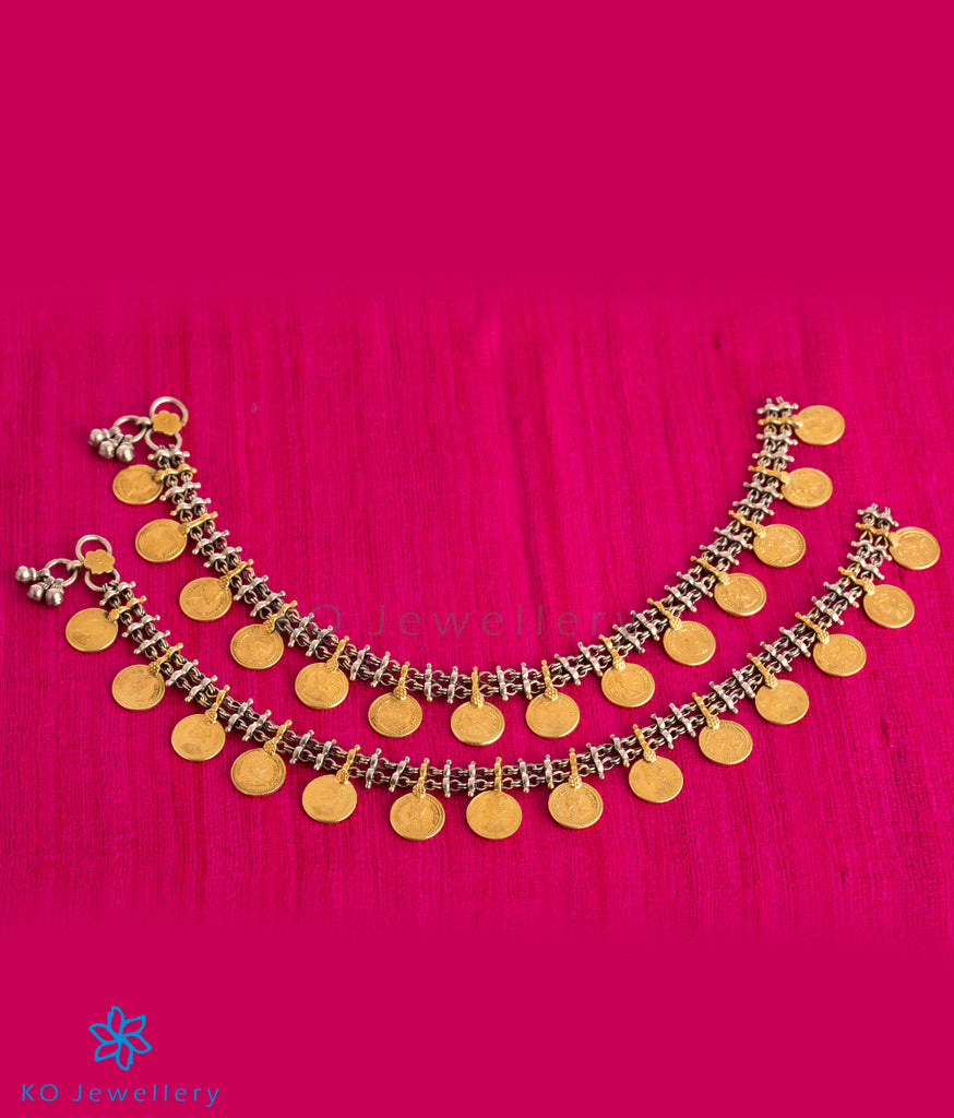 The Niska Anklets have been crafted using gold-dipped antique silver coins of colonial India. Coins depicting Queen Victoria and King George V are used alternatively . Handcrafted in Sterling Silver (92.5%), the two-tone gold/silver effect adds to their charm.