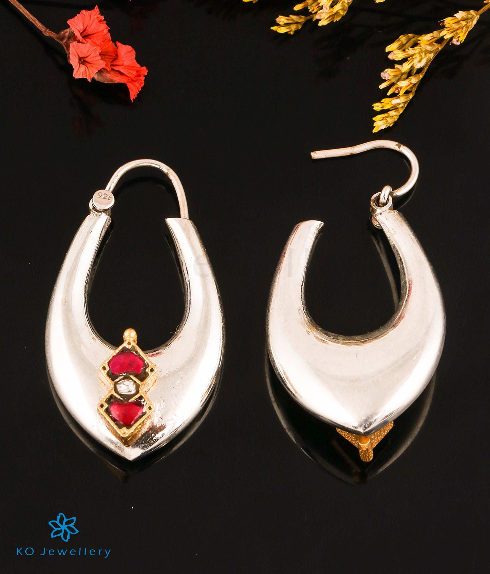 The Ruchira Silver Polki Hoops (Red/White)