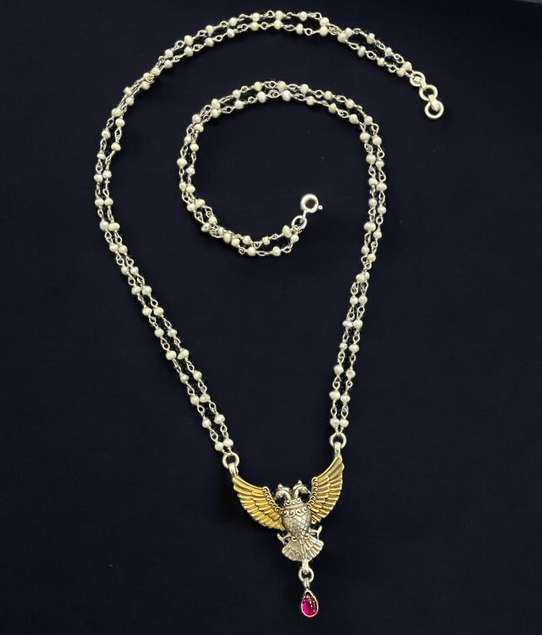 The Uvasri Silver 2 layer Pearl Gandaberunda Two-tone Necklace