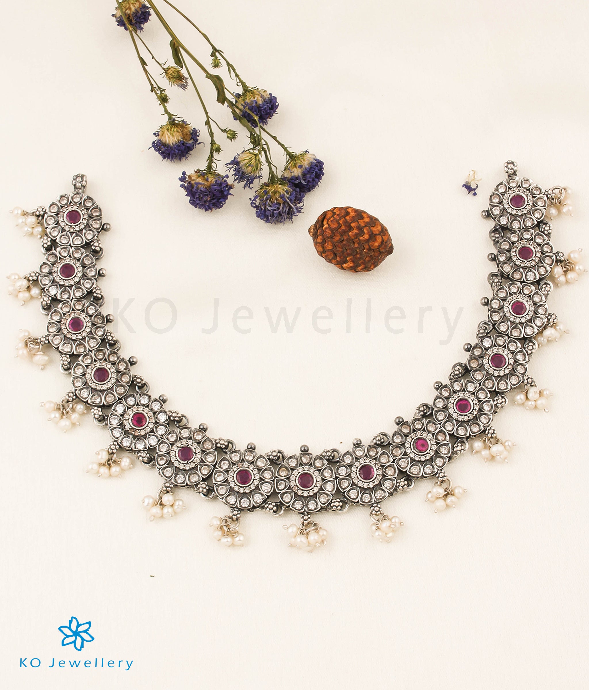 The Aadhya Silver Necklace (Oxidised)- Buy temple necklace online - KO Jewellery
