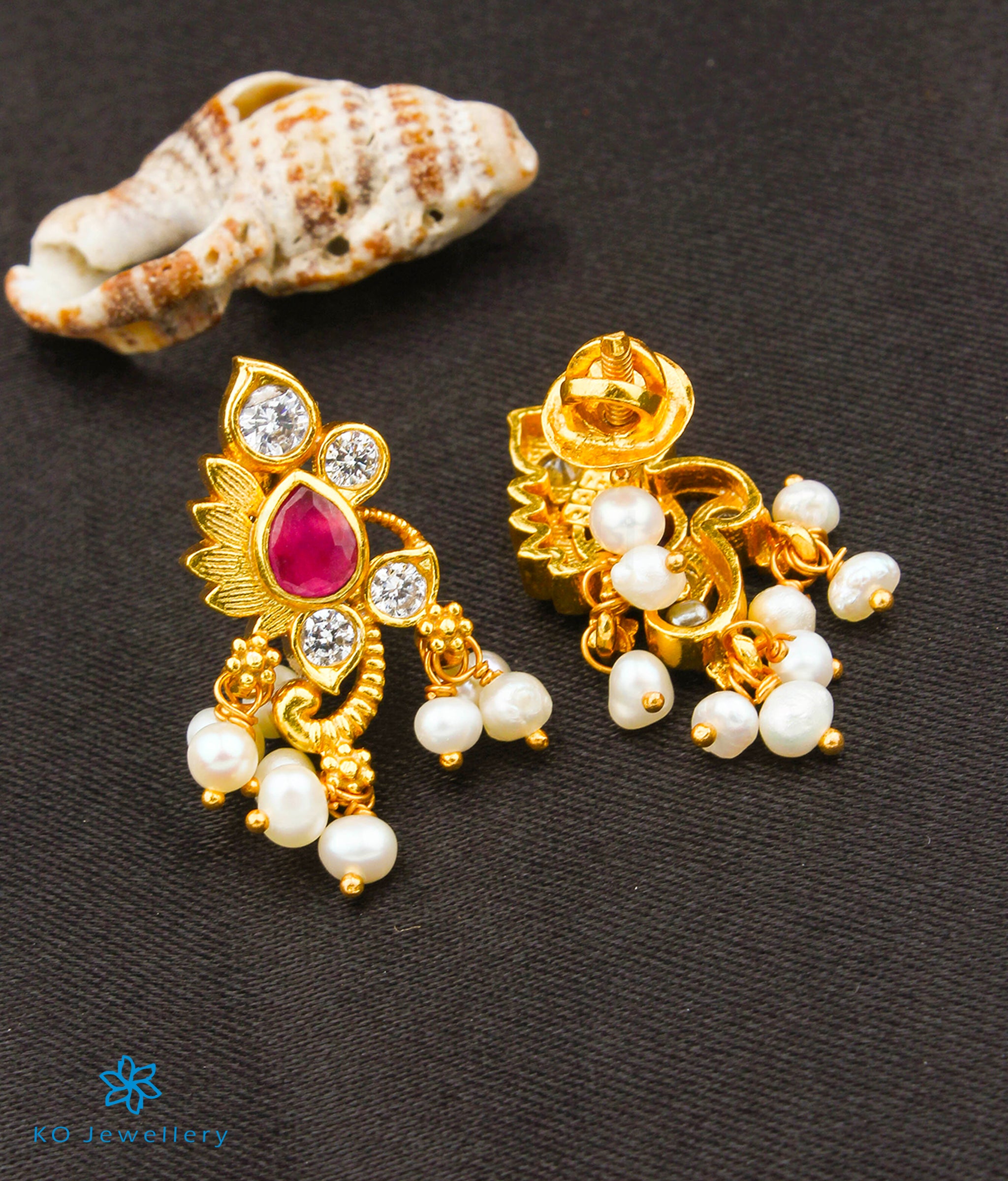 Gemstones used: kempu stone (also known as spinel or Zircon), AAA+ Quality Cubic Zirconia, natural cultured Pearl.