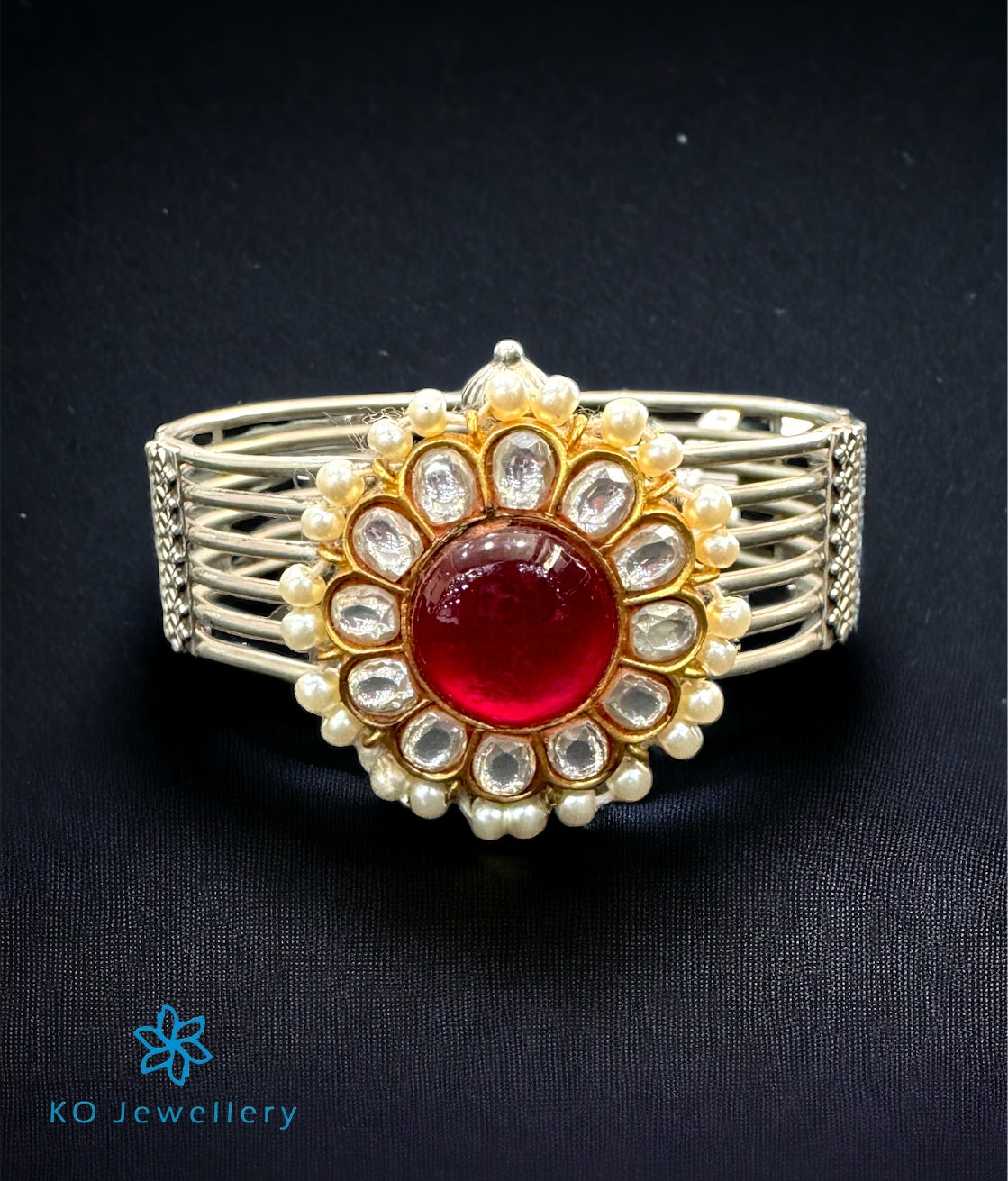 The Silver Kundan Antique Openable Bracelet (Size 2.4)-Buy Unique, designer silver bangle Online at Best Prices in India . - KO Jewellery