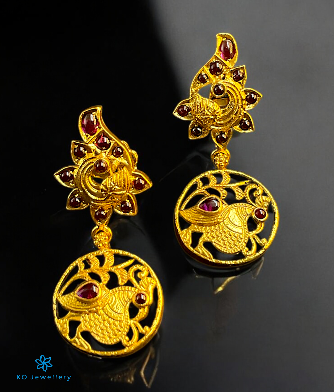 Step into the world of opulence and timeless tradition with these Gorgeous Temple Jewellery Style 925 Silver Handcrafted Peacock Earrings. Crafted from high-quality 925 sterling silver and elegantly dipped in 24K gold, these earrings are a perfect blend of luxurious materials and intricate design. Featuring vibrant Kemp stones and a regal peacock motif, these earrings capture the essence of traditional Indian jewellery with a contemporary twist, making them ideal for weddings, festivals, and other special occasions.