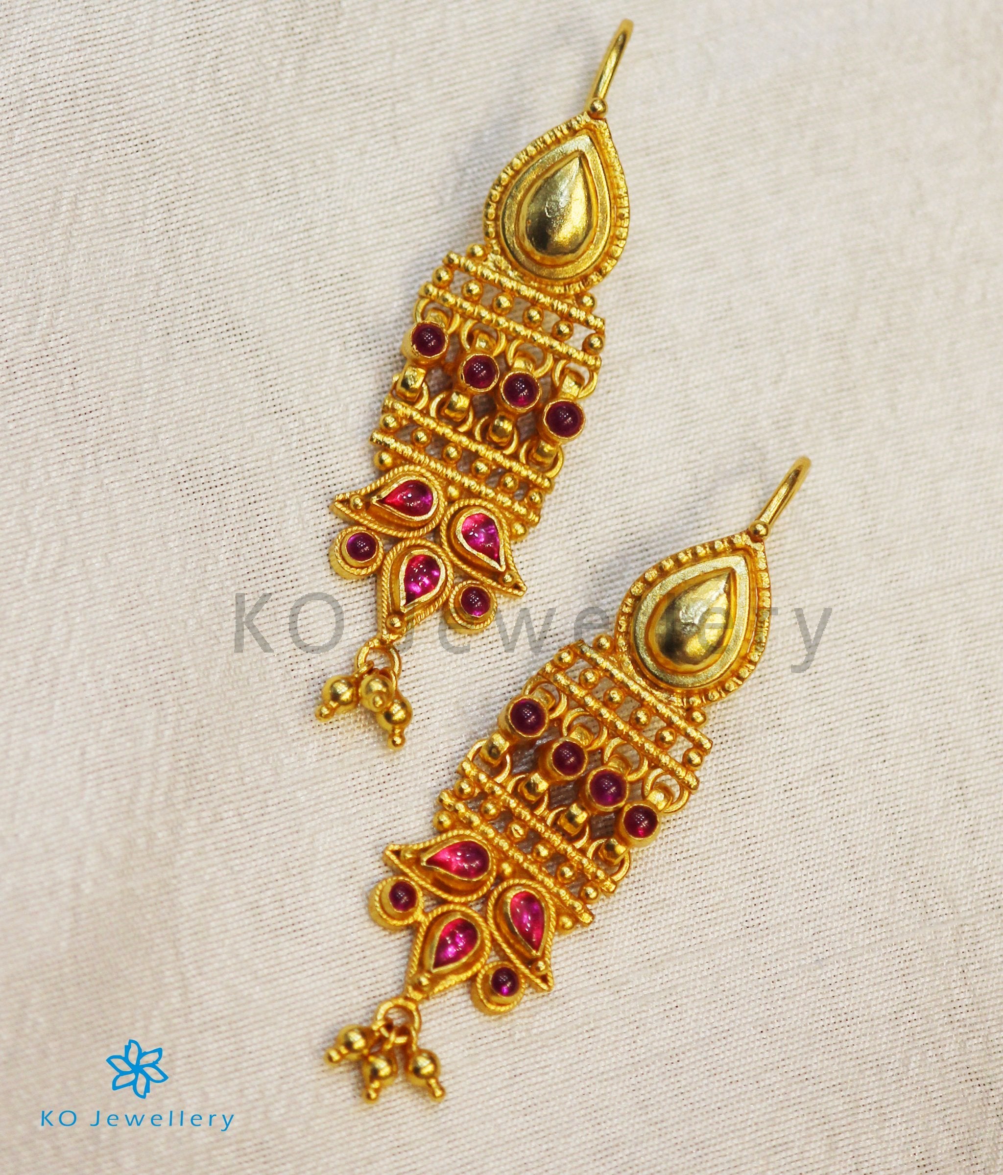 A contemporary design with a glamorous twist makes this Sterling Silver (92.5%) earring a precious keepsake. Bejewelled with kempu stones and dipped in 24 karat gold, this gorgeous earring will look stunning with all the pieces in your wardrobe.