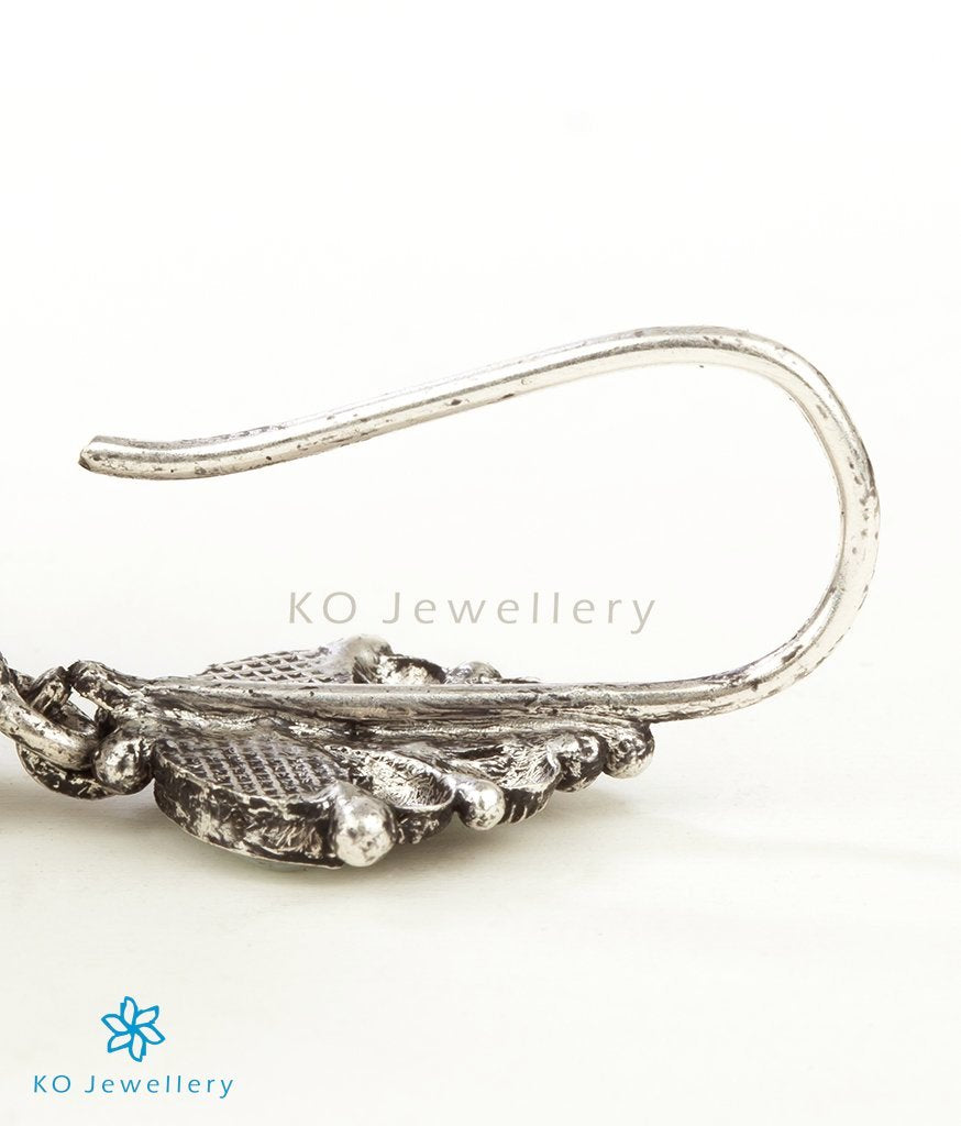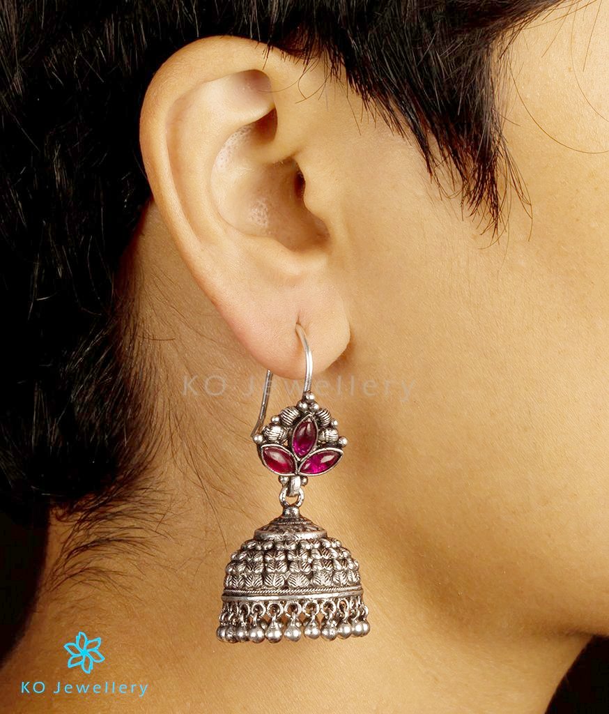 An ornate jhumka featuring intricate silver work and natural Pearl.Handcrafted from Sterling Silver (92.5%), these jhumkas are a beautiful mix of tradition and Indian craftsmanship. It will look gorgeous with your favourite sari or traditional dress.The jhumka has been oxidised to accentuate the design and comes with a hook.