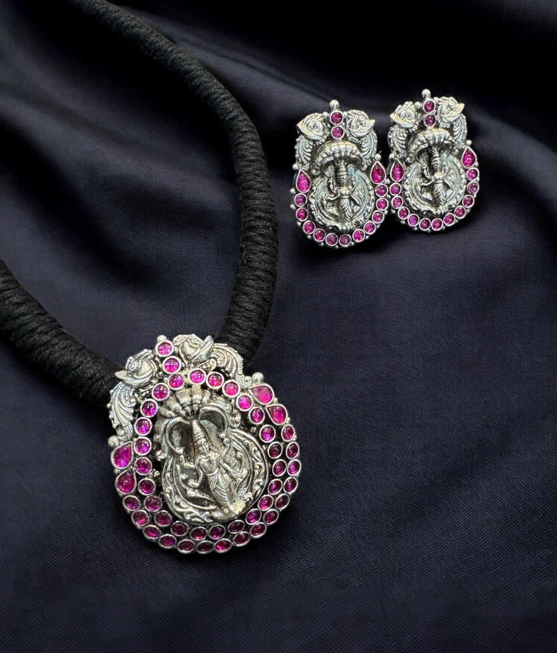 The Adishesha Lakshmi Silver Thread Necklace & Earrings