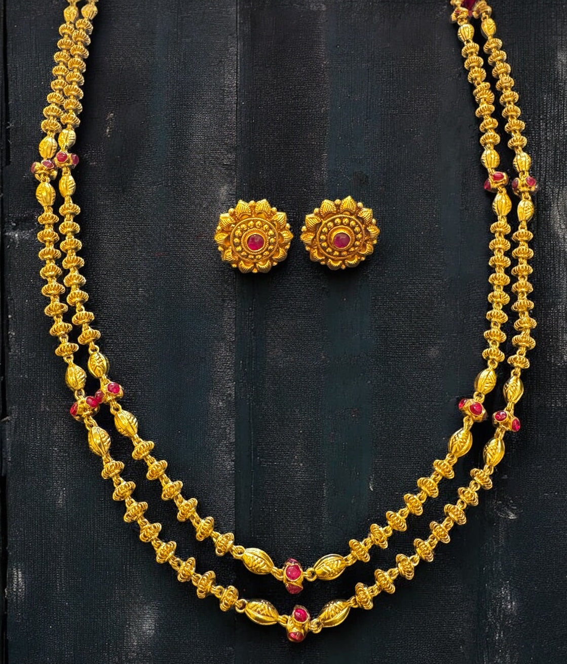 The Aditi Silver 2 layer Tulsi mala Necklace & Earrings