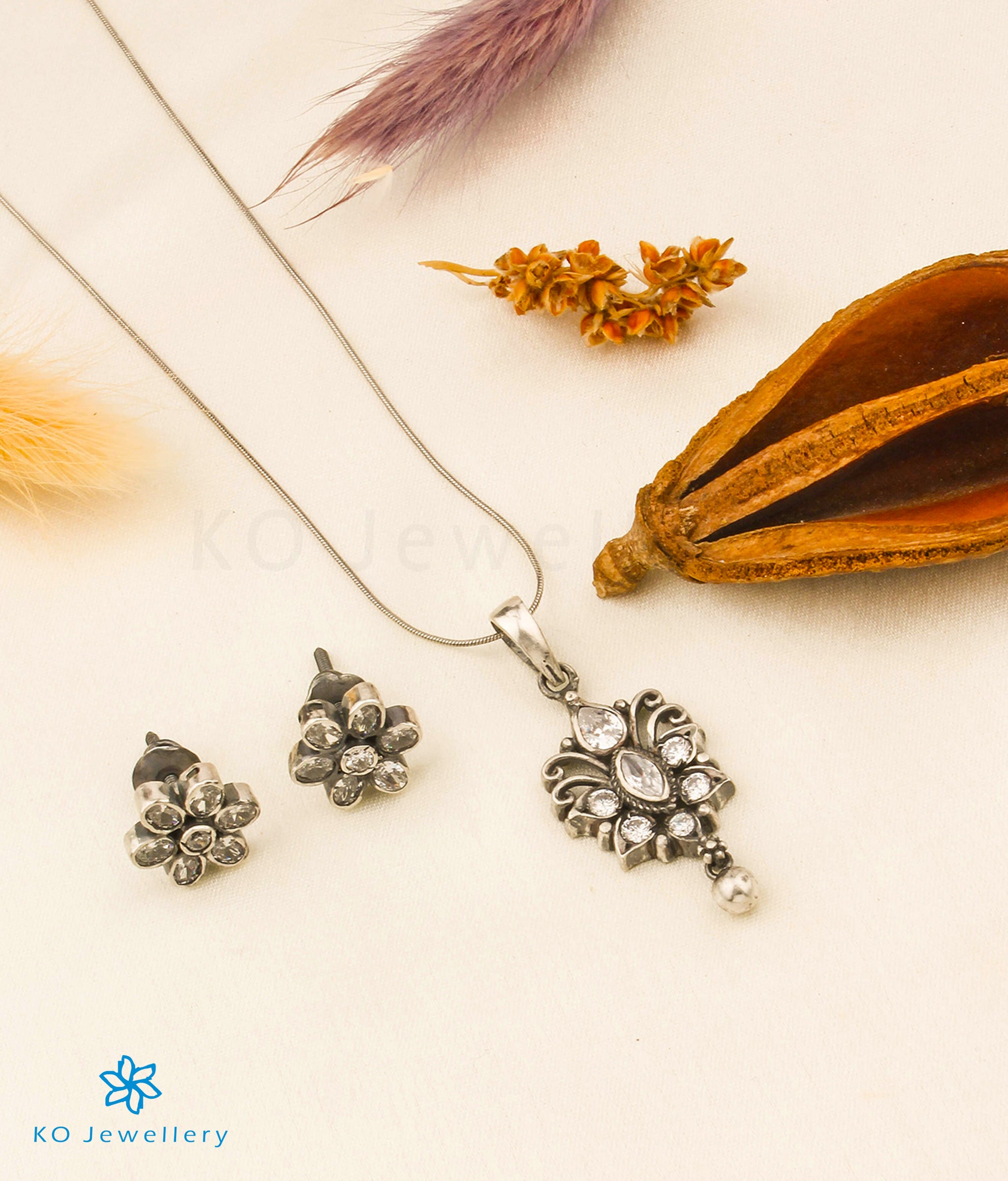 The Advika Silver Kemp Pendant Set-Buy small lightweight pendant sets Online - KO Jewellery