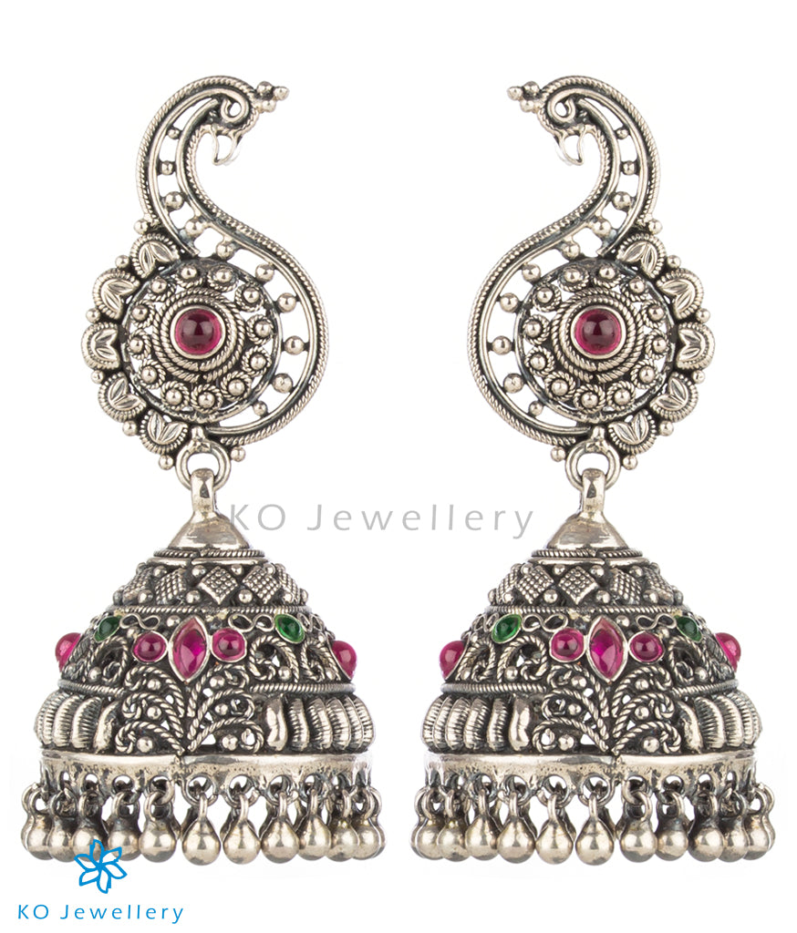 The Vrsin Silver Peacock Jhumka (Oxidised)