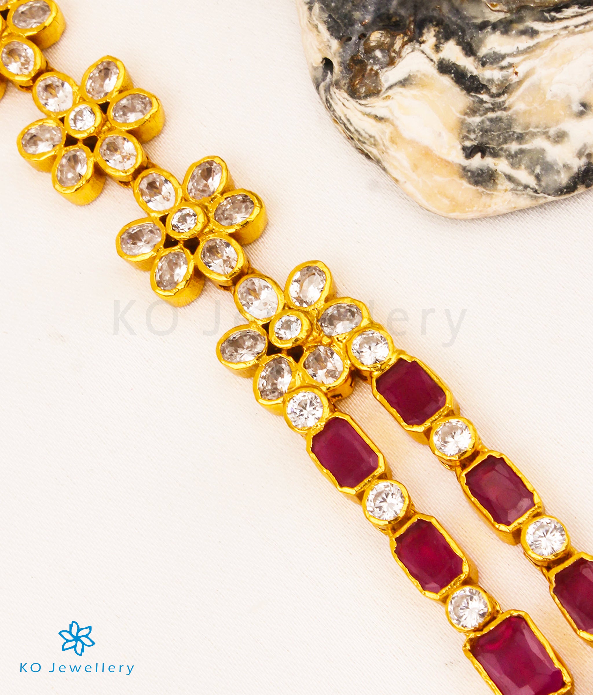 The Yamini Silver Necklace (Red) - KO Jewellery