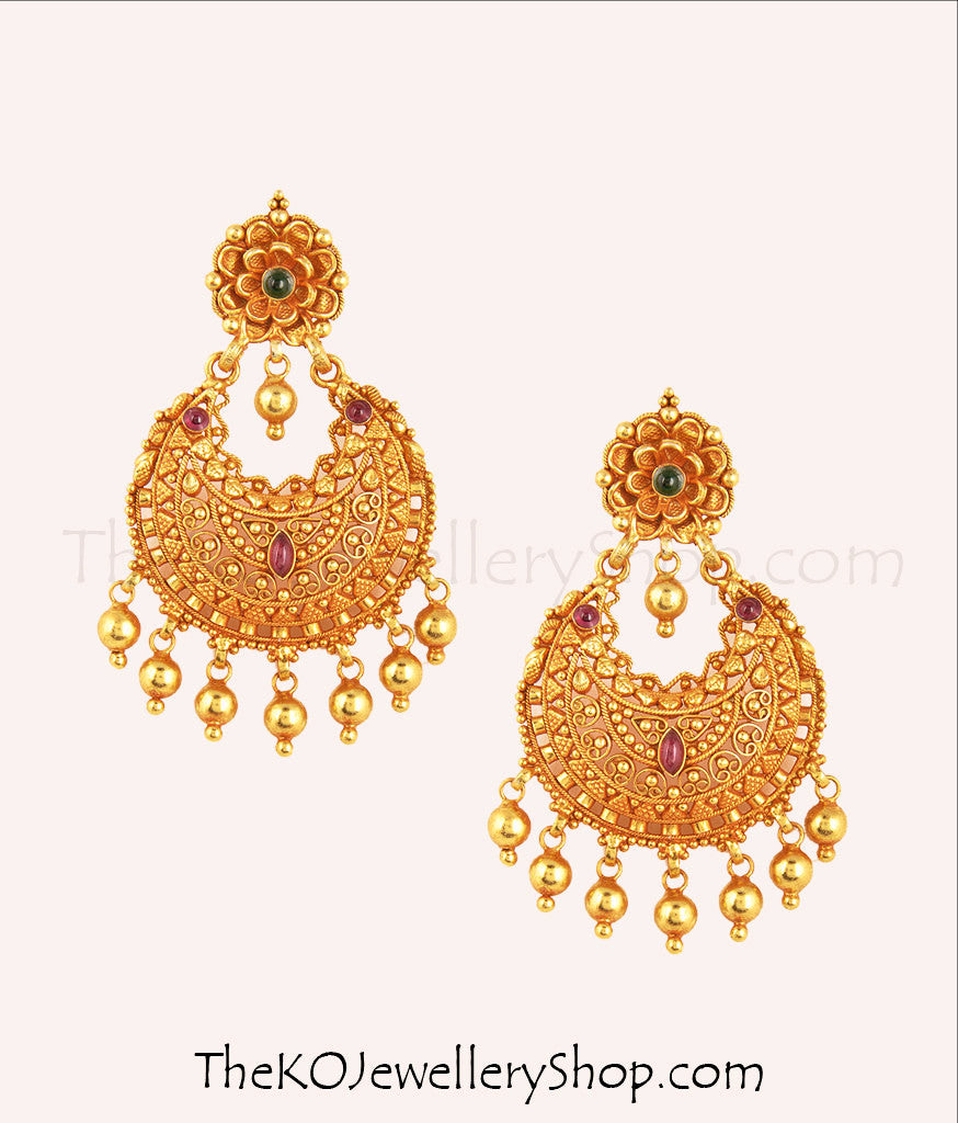 Handmade Exquisite 925 Pure Silver Chaand Bali Earrings – Gold Dipped with Kempu Stone