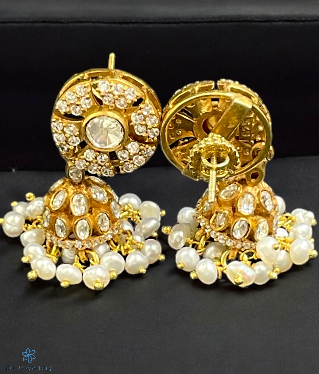 The Ziba Silver Kundan Jhumkas - Buy latest design temple jewellery jhumkas - KO Jewellery